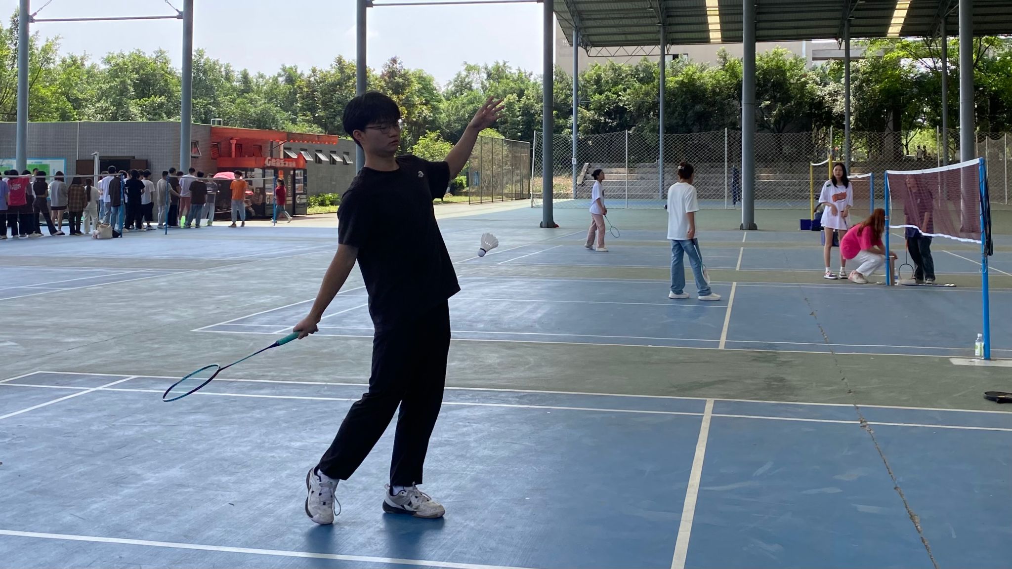 经过激烈角逐与层层选拔,最终四人进入决赛,紧张的“羽艺杯”决赛终于到来。决赛作为一场高水平的竞赛,比赛队员们展现出了各自的实力技巧,他们跟随羽毛球的跳跃在场地上奔跑,精彩的发球、大力的扣杀、巧妙的吊球以及攻防双方的转换,让同学们大饱眼福,为运动员呐喊助威的加油声一阵高过一阵。