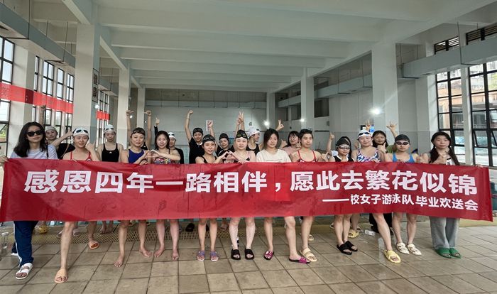 追忆似水年华,展望如画未来,六月,栀子花开,毕业季如约而至。相伴三载惜别情深,为欢送毕业生,校女子游泳队于5月31日下午在C区天池举办毕业生欢送会。会议伊始,王钰涵教练对毕业生在队期间为校做出的贡献表示了充分的肯定,同时表达了对同学们最美好的祝愿。本次毕业欢送会主要以水中拔河、水中探宝、水中对抗赛等娱乐项目为主,旨在让大四队员在临行之际再次重温水的魅力。