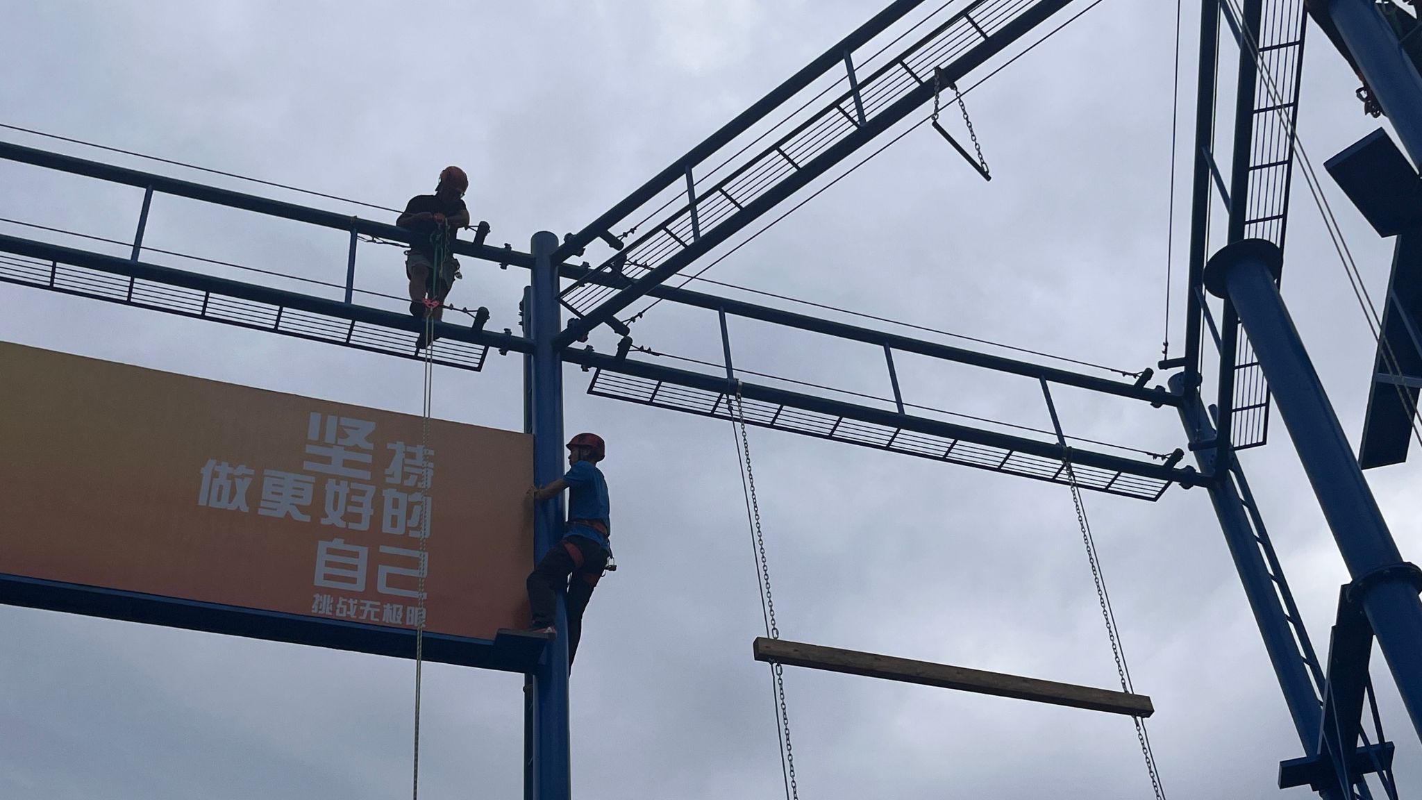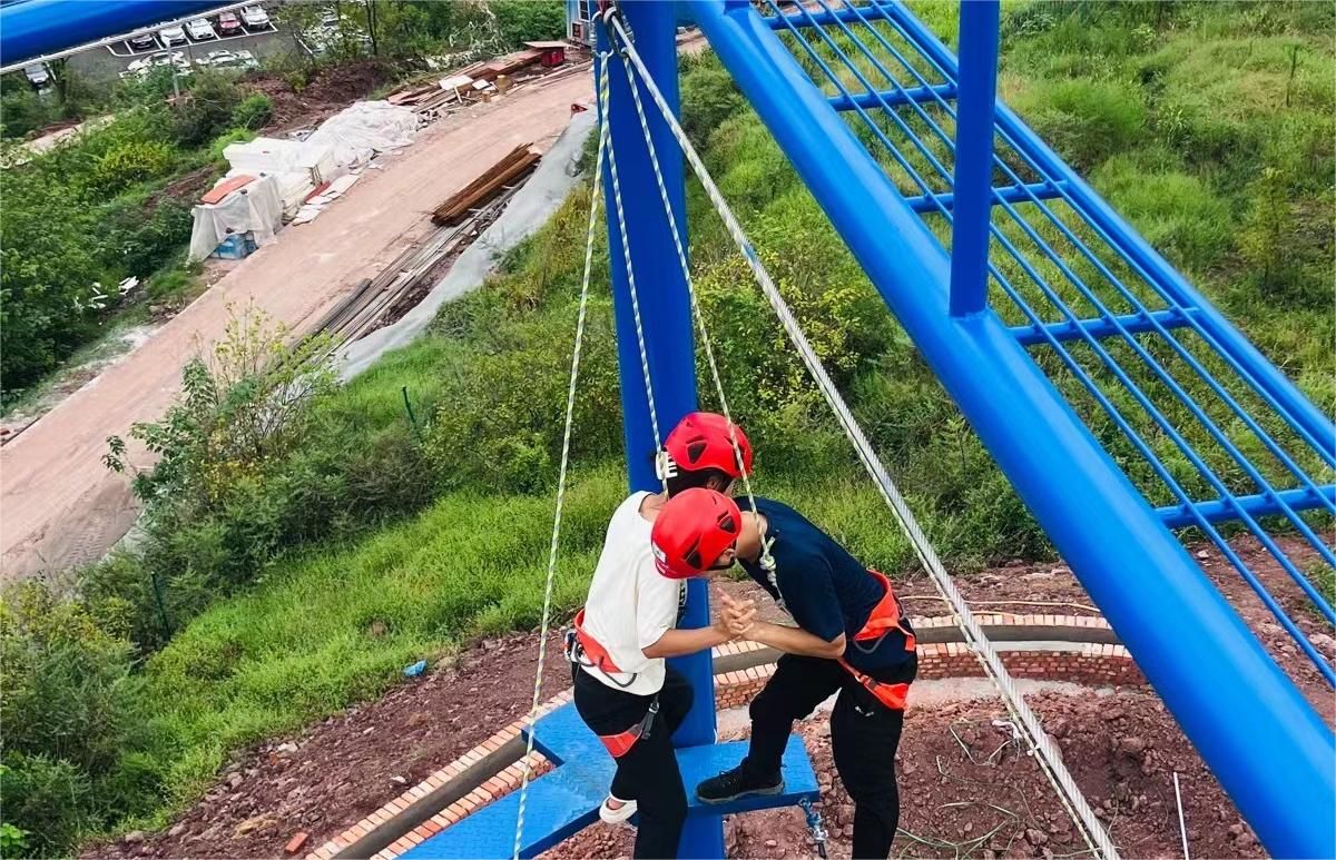 高空项目是极具挑战性和刺激性的,但同时危险系数也非常地高,合格的场地和规范的操作就尤为重要。在会议结束后,江华主任同营地教育中心全体教练来到高空基地检查和验收。教练们对高空场地上的所有项目都亲身试验,是否摇晃剧烈?是否磨损绳子?是否缺少零件?每一个项目,每一个细节严格把关,层层检验。发现的问题第一时间与施工队伍进行了沟通,确认课程需求标准,保证高空基地硬件设施的合格性。