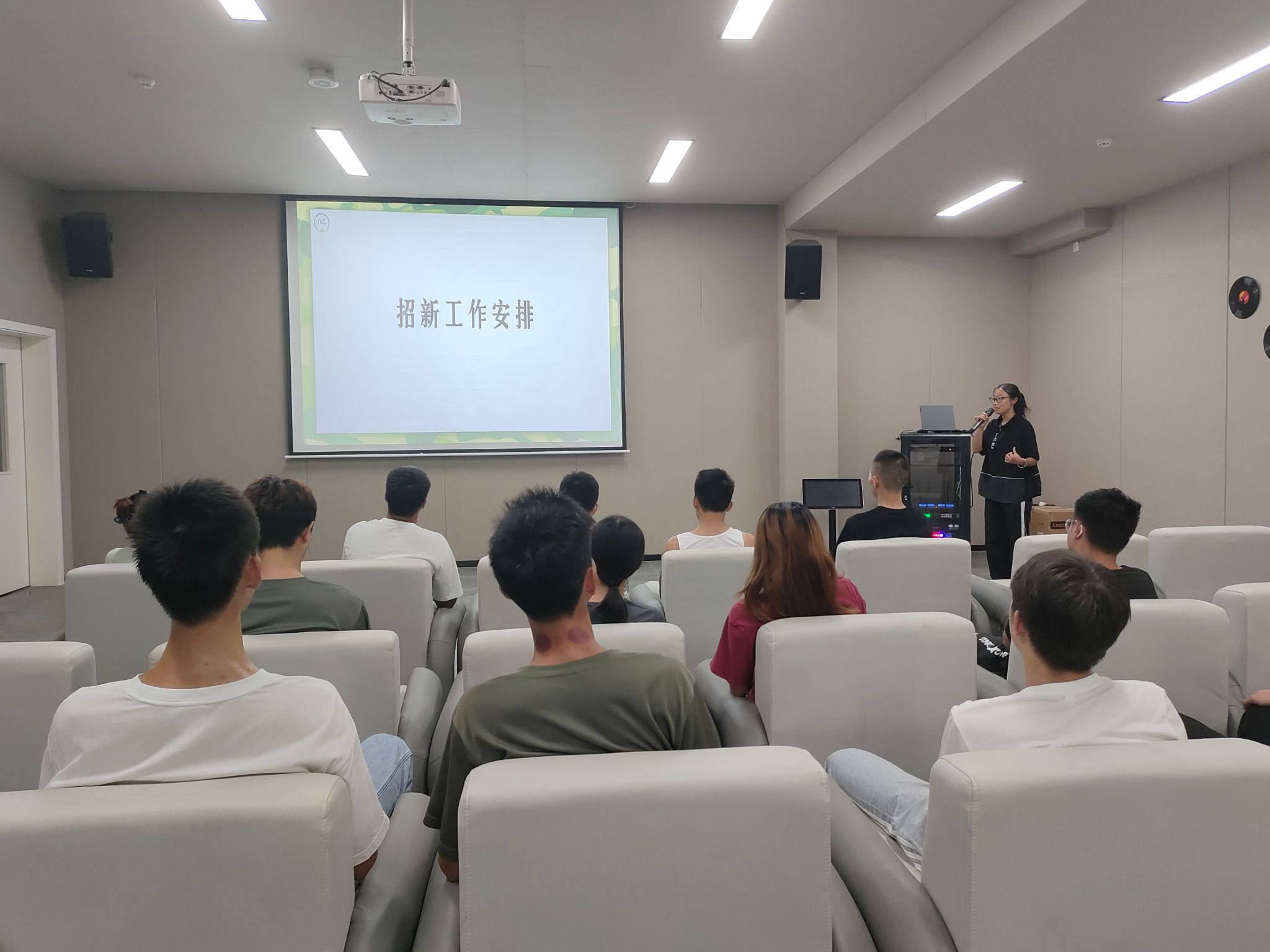 会议伊始,社团各部长都在议论“暑假作业”的完成情况,逐一检查,用高标准、严要求对待自己。在会议开始时,苏玮玮社长首先强调9月的工作重点是招新,提出希望大家奔走在各大新生群里,做好社团宣传工作,争取扩大本学年招新人数的目标。根据学校社团招新整体安排,整理出招新工作的注意事项与值日表,同时明确招新地点和时间,部署后期招新结束的清理工作。为了招新工作更好的进行,苏社长对迷彩俱乐部内部组织架构做了清晰地阐述,通过训练部、宣传部、后勤部、活动策划部、国旗部五大部门运营社团,根据新生可能会提出的问题进行整理,争取做好每一次新生的答疑解惑,让更多的同学喜欢上社团。