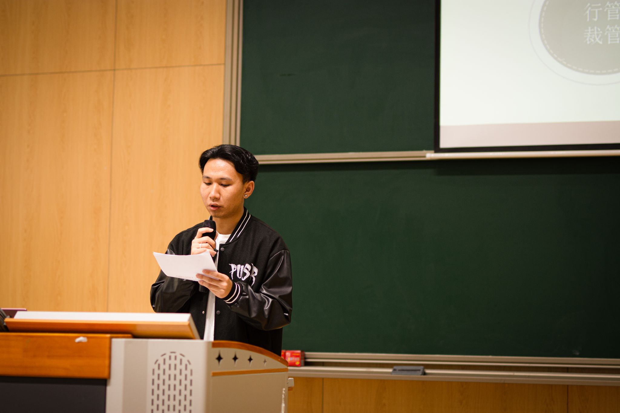 三位主席就自身经历展开分享,证明了工作与学习并不冲突,平衡好日常的工作与学习,大家会度过一个充实且愉快的大学生活。郑浩然主席从自己这些年的获奖经历讲起,一项项罗列的奖项,使大家大为震撼的同时,也鼓舞了众多干事。廖慧婷主席从自身努力讲起,讲到电竞社的创办,也讲出了自己的目标。目标不是说说而已,正如17岁的马克思写到:每个人眼前都有一个目标,如果内心深处的声音认为这个目标是伟大的,那他实际上也是伟大的。但是,这声音很容易被淹没;我们内心深处的声音可能须臾而生,也可能须臾而逝。相信我们能够坚守初心,努力办好每一场活动,不辜负每一份认真,也不辜负每一份信任。