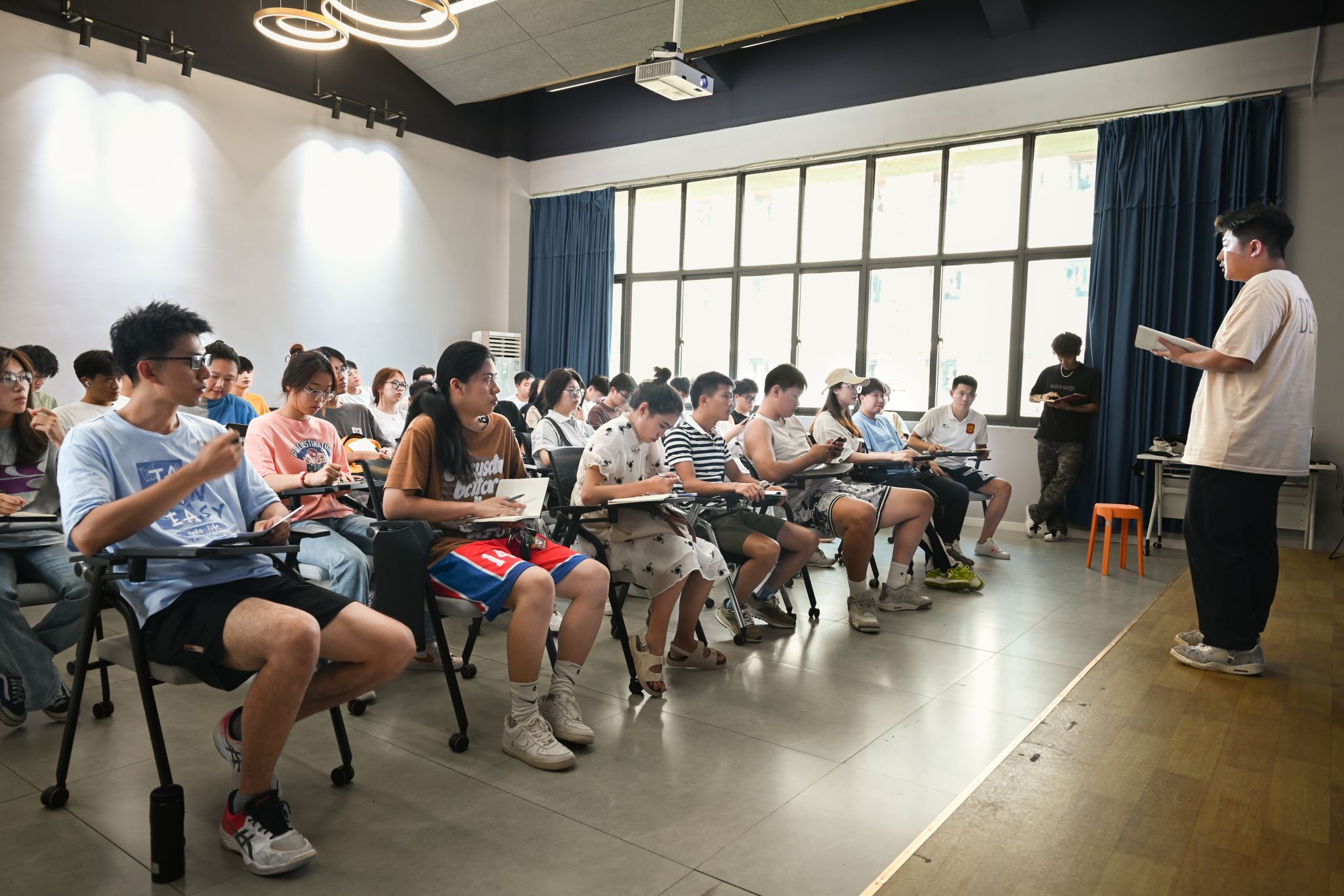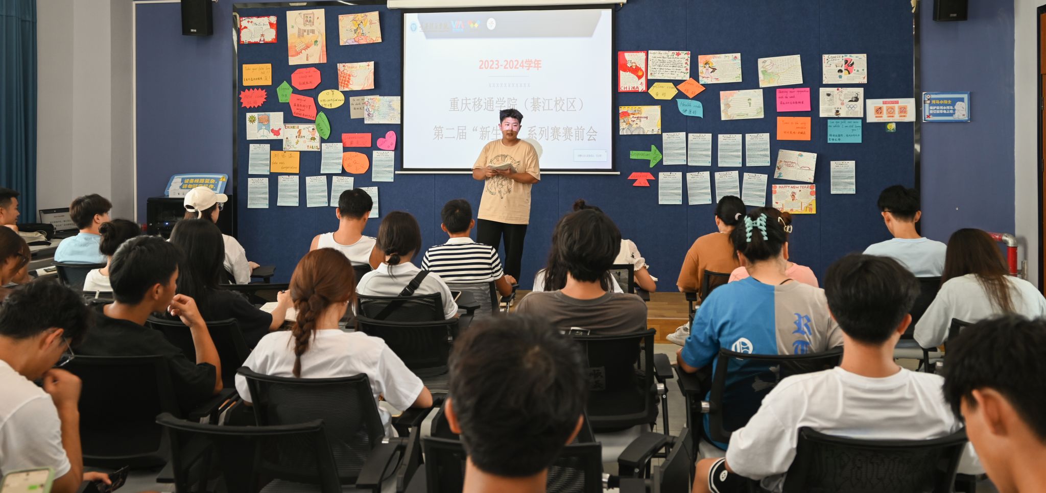 2023年9月19日 — 第二届“新生杯”系列赛开幕式前夕。我校各学院完满教育竞技体育板块的负责人汇聚一堂,由赛事活动部部长谭万江在綦河书院二号楼两句·演讲培训室主持了一场有关第二届“新生杯”系列赛的赛前会。
