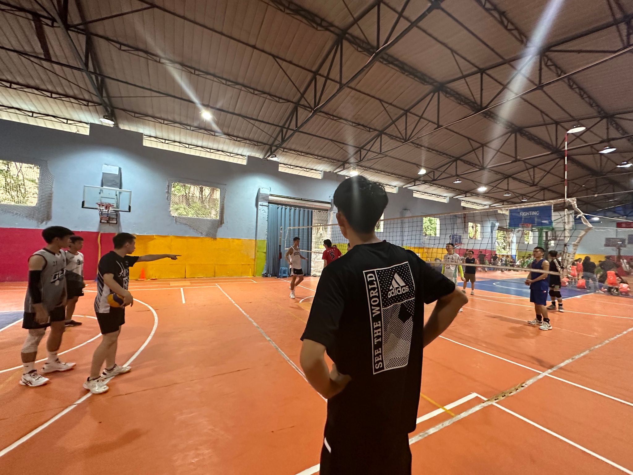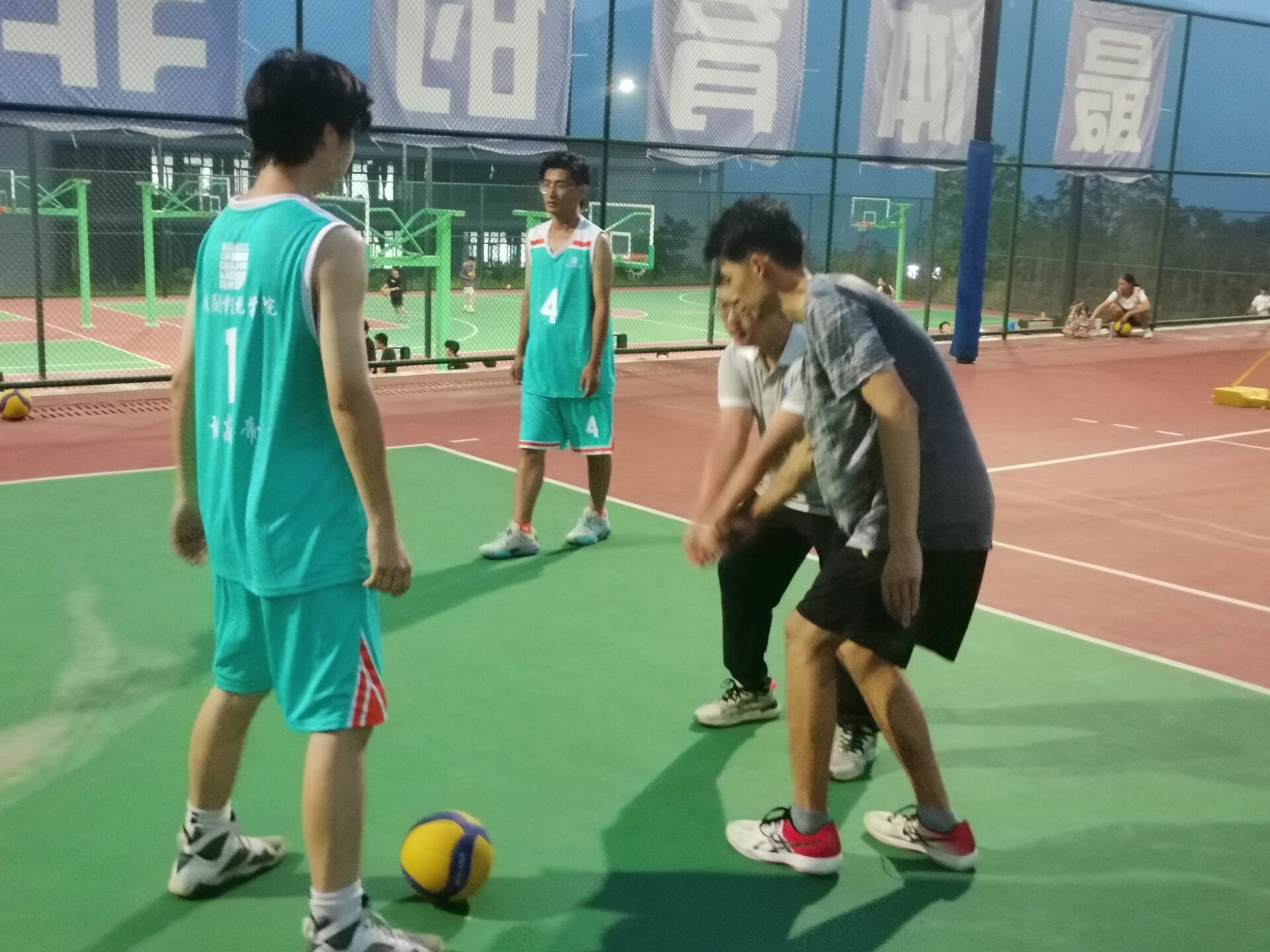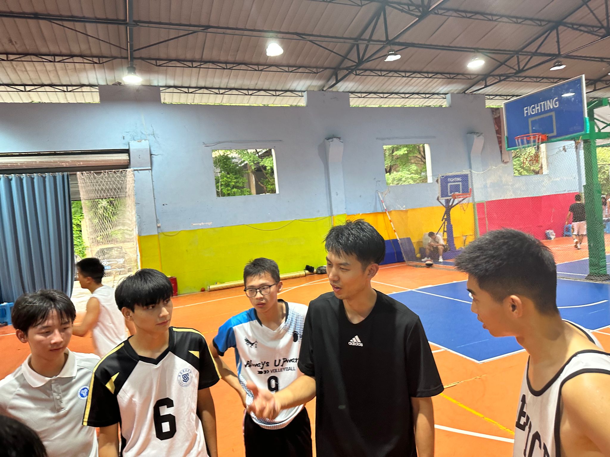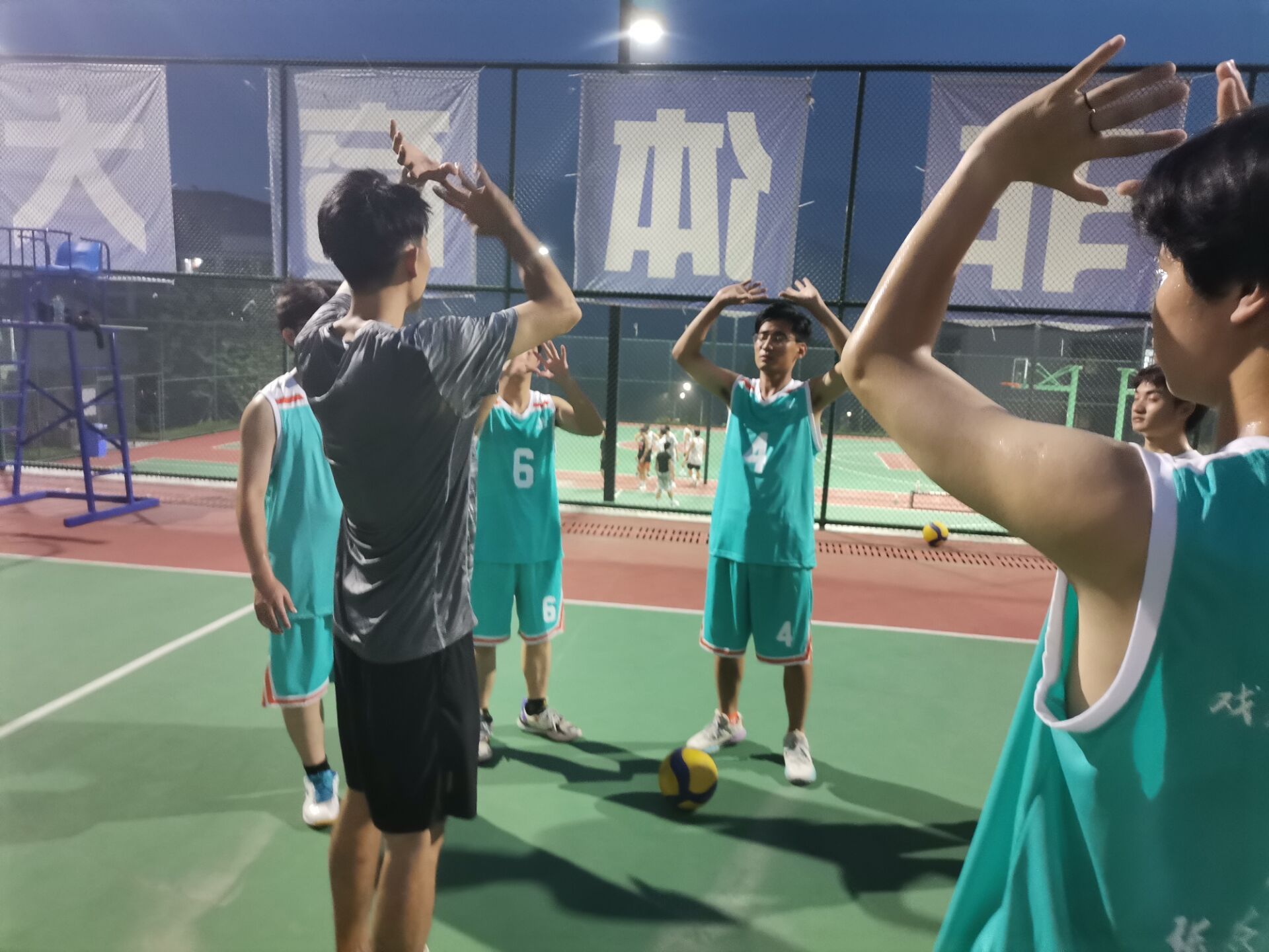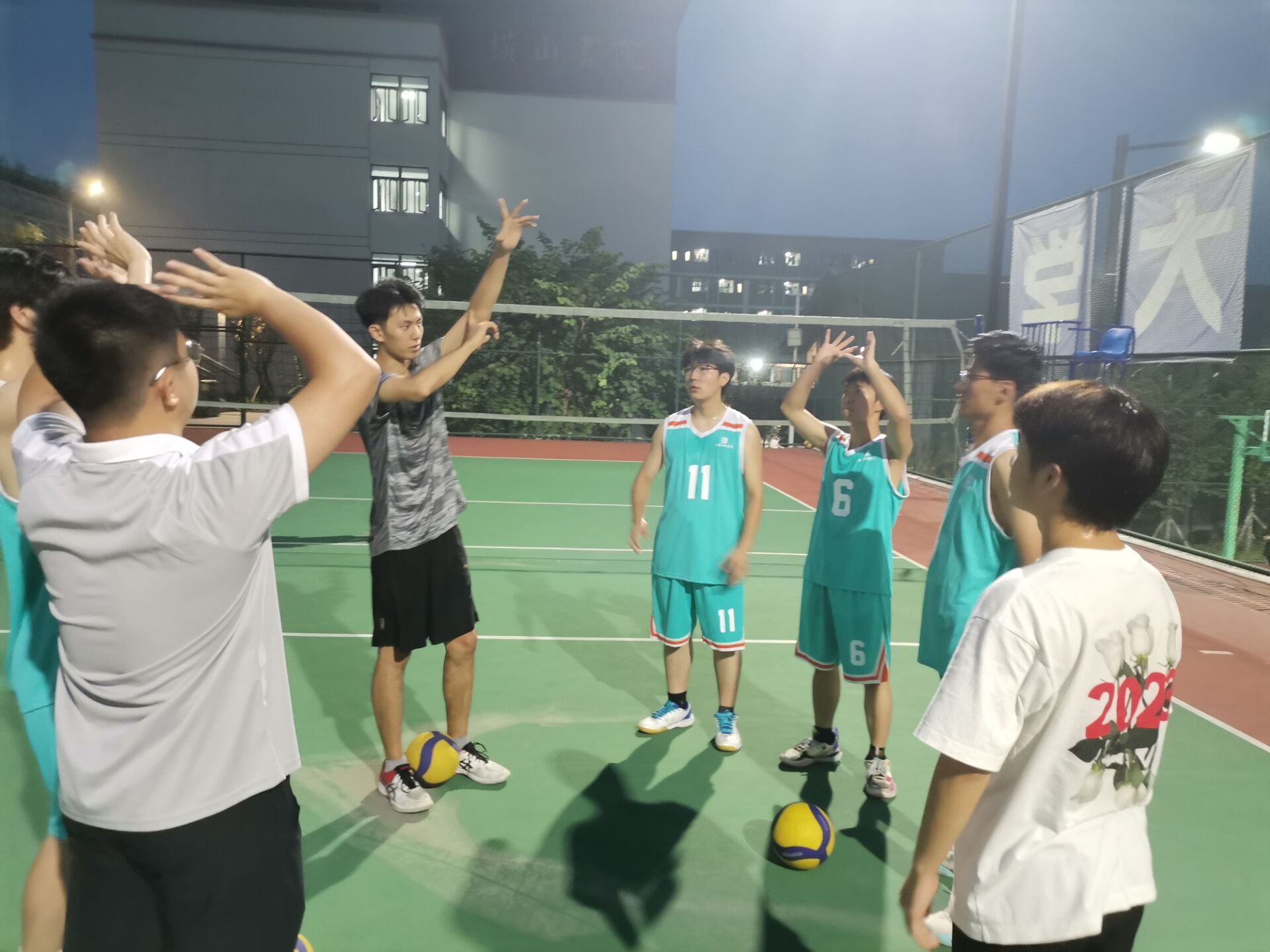 周六的排球校队团建活动将团队合作和磨合提升到新高度。我们安排了友谊赛,这为队员们提供了与其他队伍交流的机会。在比赛中,李易泽教练不仅仅是观众,同时积极参与并亲自上阵,为队员们进行现场教学。李教练不仅指导队员们在比赛中运用战术,还鼓励大家保持冷静、专注和灵活。大一新同学在比赛中渐渐领悟到排球的魅力,并与老队员们建立了更紧密的联系。团建活动的成功举行巩固了团队凝聚力。