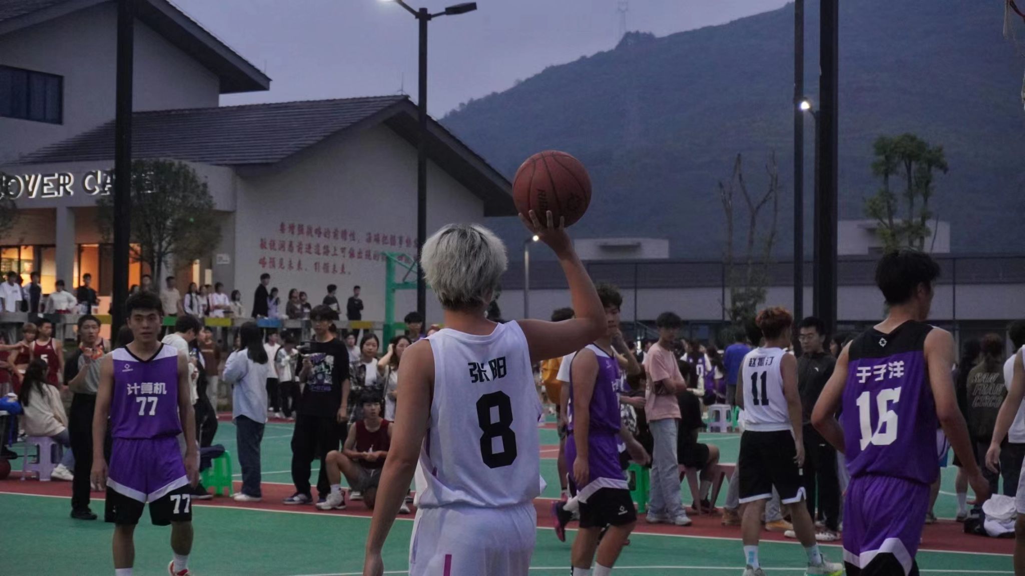 篮球场再次迎来了活力四射的健儿们,双方队员陆续上场,气势十足。男生们在场上尽情挥洒汗水,展现自己训练的成果。娴熟的运球、坚定的投篮,为最后的胜利拼尽全力。场上的女篮们,充分阐释了“巾帼不让须眉”这句话,她们配合默契,赢得场外师生的一阵阵喝彩。同学们不仅赛出了自己的竞技水平,更描绘着自己独特的青春。