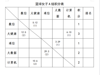女子组中大健康、计算机、通信齐头并进并列第一的宝座,数信暂时的位列第二,但展现的竞技状态使其不容小觑。