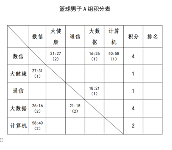 男子组大数据以高昂的竞技状态站到了榜首的位置,大健康与通信则并列第二的位置并向第一宝座发起猛烈的冲击。