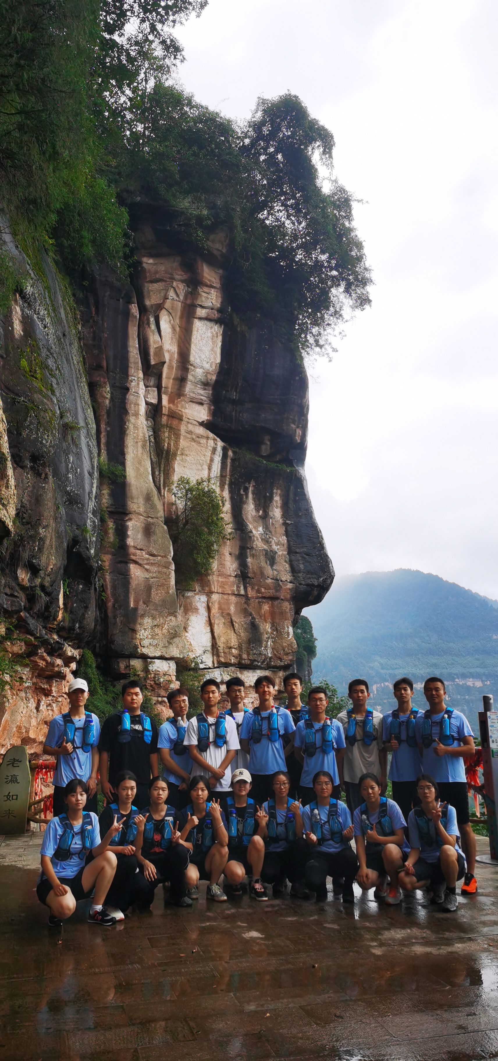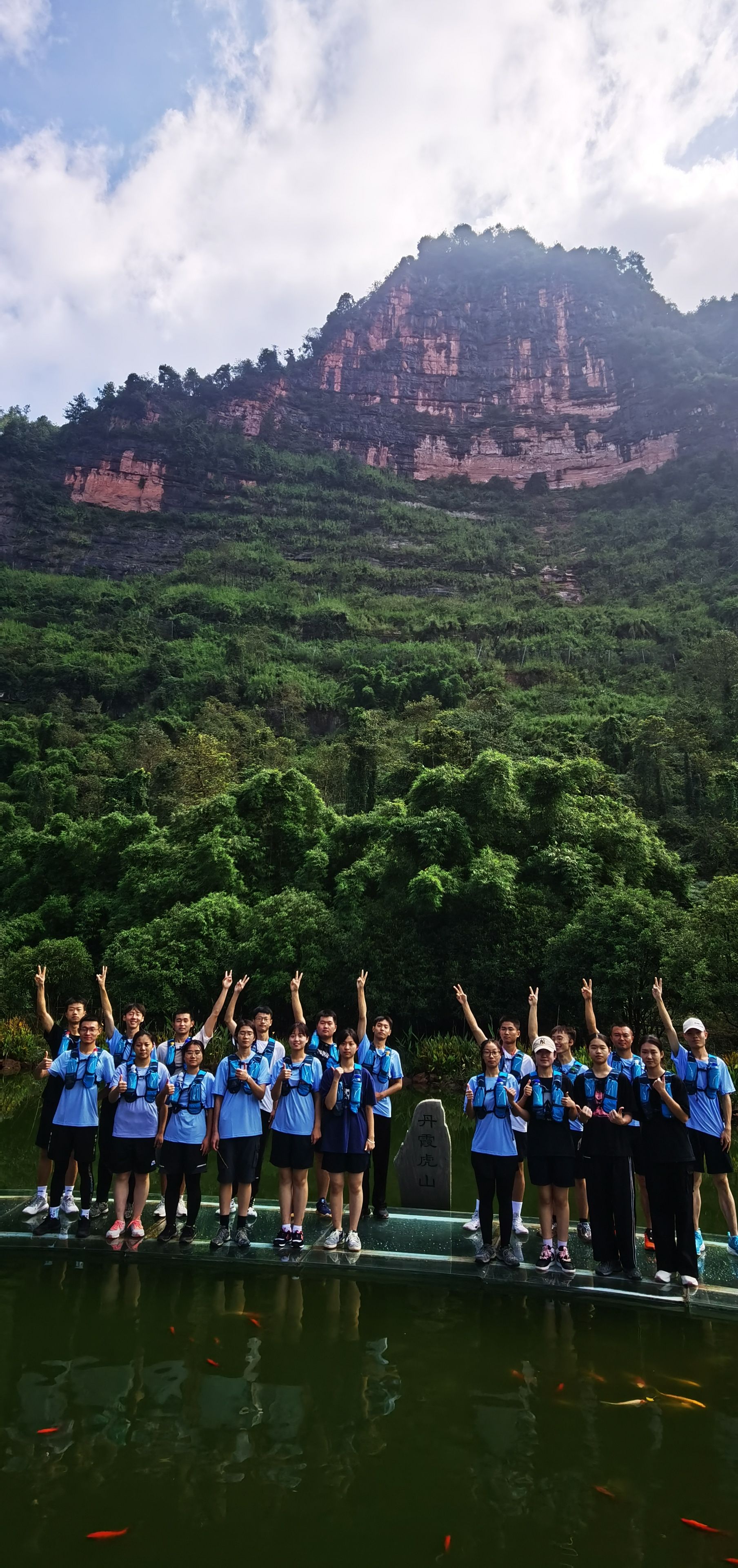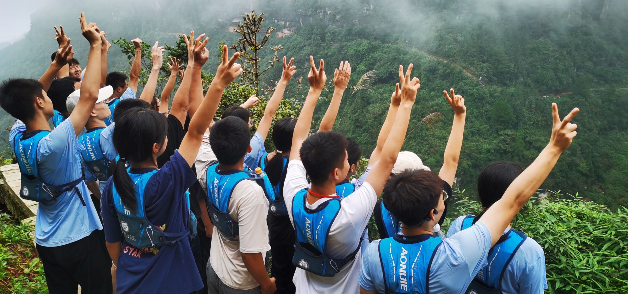 同学们乘坐组委会安排的大巴车成功抵达老瀛山景区——重庆綦江国家地质公园游客中心,简单进行了热身活动之后,怀揣着一颗激动无比的心和充分分泌的多巴胺一起站在起跑线上,每一个人都宛如一张极具张力的弓,随时等待着冲锋的指令,“冲!冲!冲!”脑海中不断闪烁着过去一个月的训练,回想起每周的五公里,是烈日下的坚持,是雨中的冲锋,是额间的汗,是湿透的衣,是坚持,是热爱,是一往无前!现在,少年儿郎们,呐喊出胸中的自豪和激情,这是来自越野的激情!