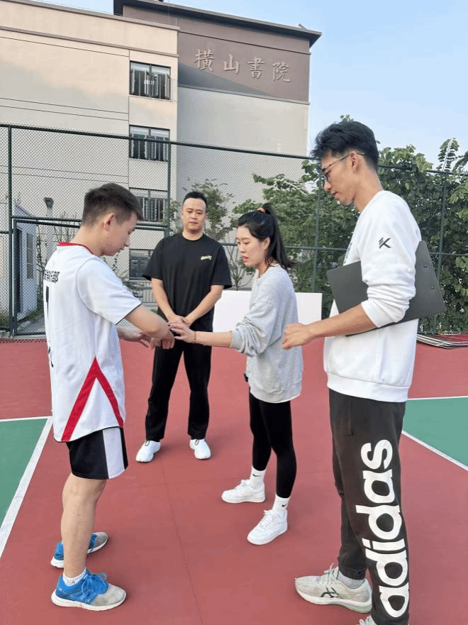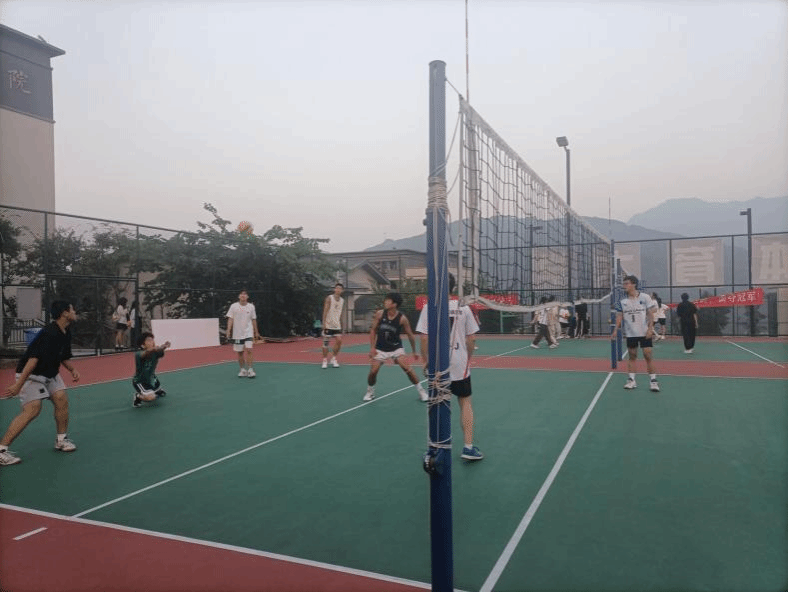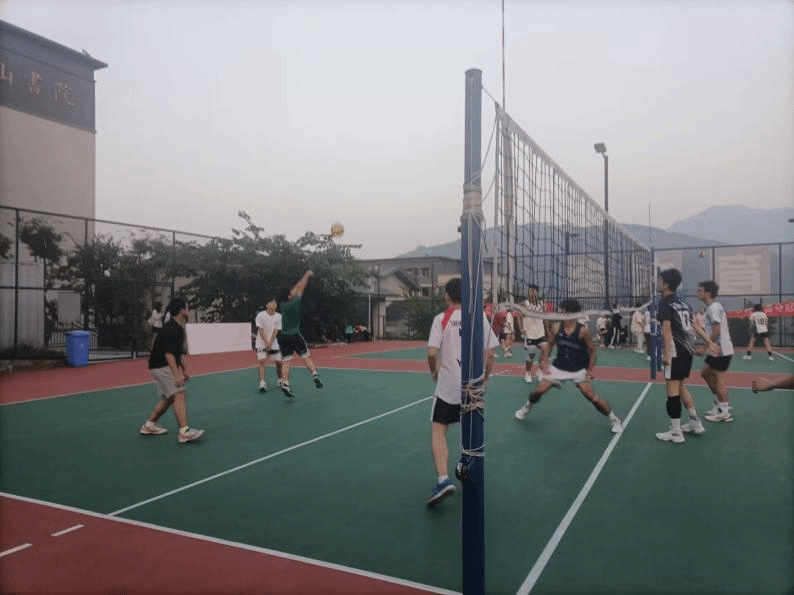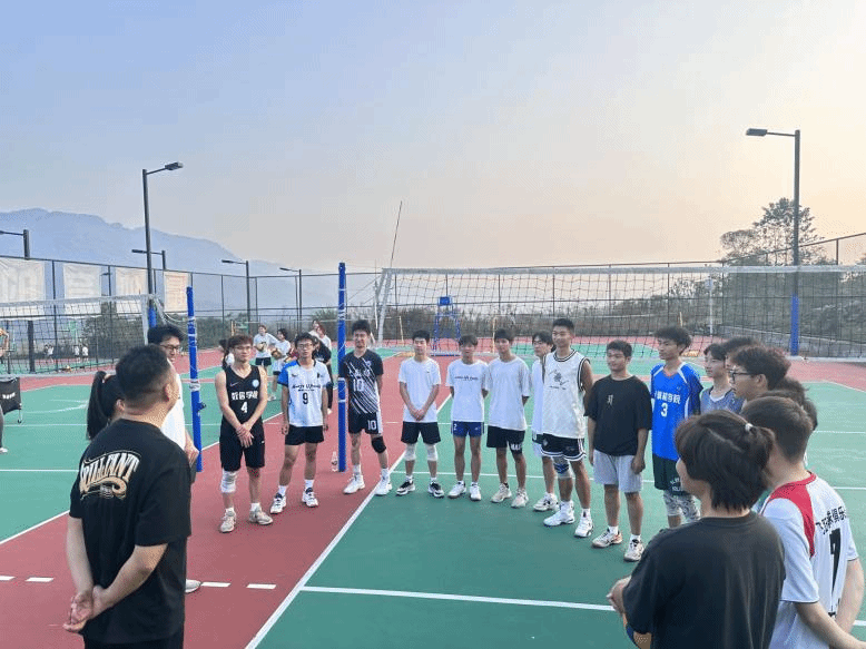 在一番交谈过后到了排球队训练的时间,五位教练便一同来到了位于横山书院的排球场观看排球队成员的比赛和训练,三位合川校区的教练一来到球场便得到了排球队队员的热烈欢迎。随后三名教练在一旁观看成员训练。并观察成员们的不足之处以便接下来对成员一对一指导和训练,帮助成员提高自己的排球技术。