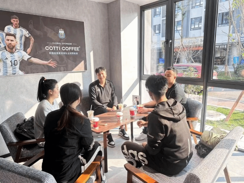 随后五位教练来到了咖啡馆,一同坐在咖啡馆内交流排球训练过程遇到的问题,讨论教学排球方面如何做的更好。以及讨论针对不同的队员进行不同的训练,帮助队员们更好地突破自己的瓶颈期,助力每位成员的排球梦想!之后几位教练发表了自己对于教学方面的见解,相信在他们的栽培下,球队的队员们会得到更优秀的指导,嫩小的萌芽就能更快开出美丽的花!