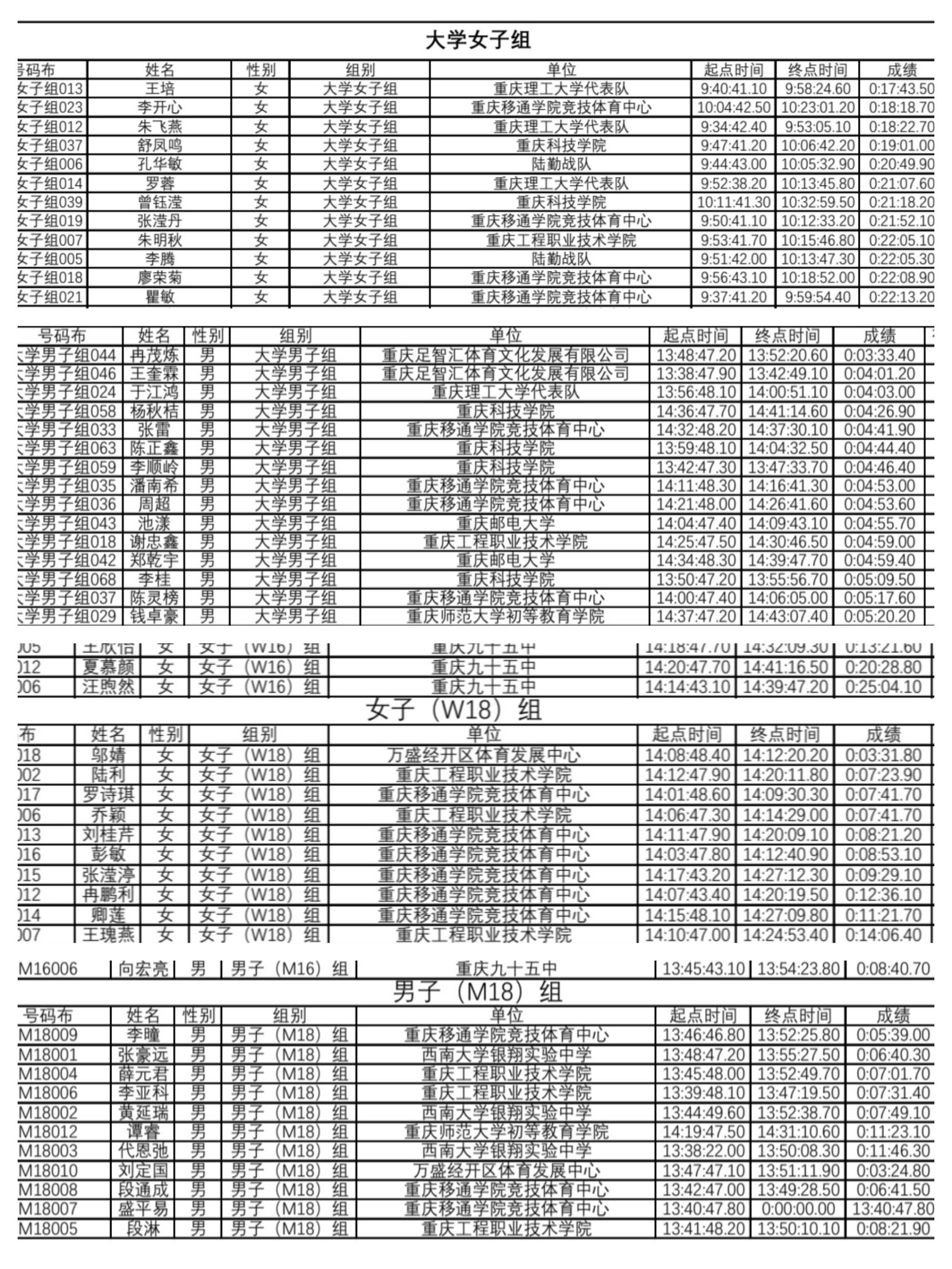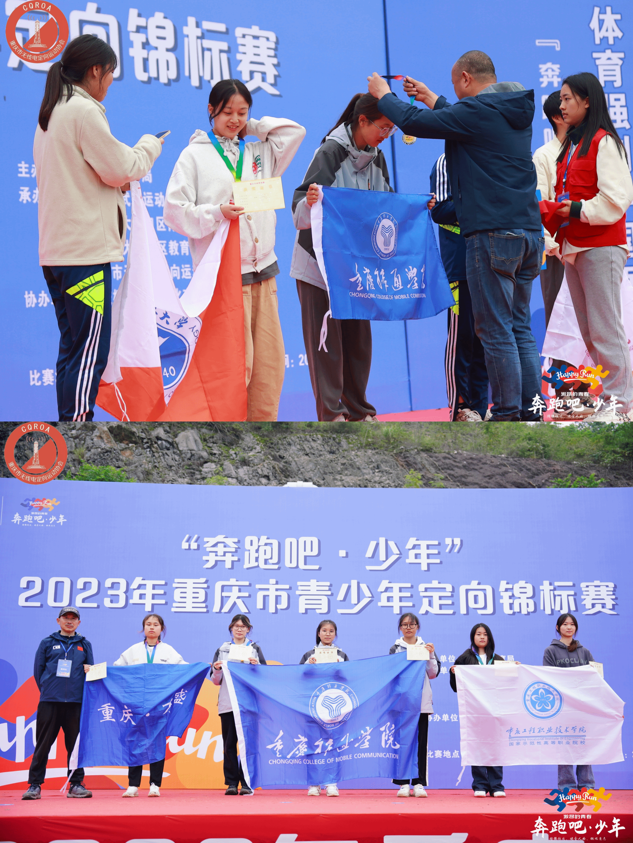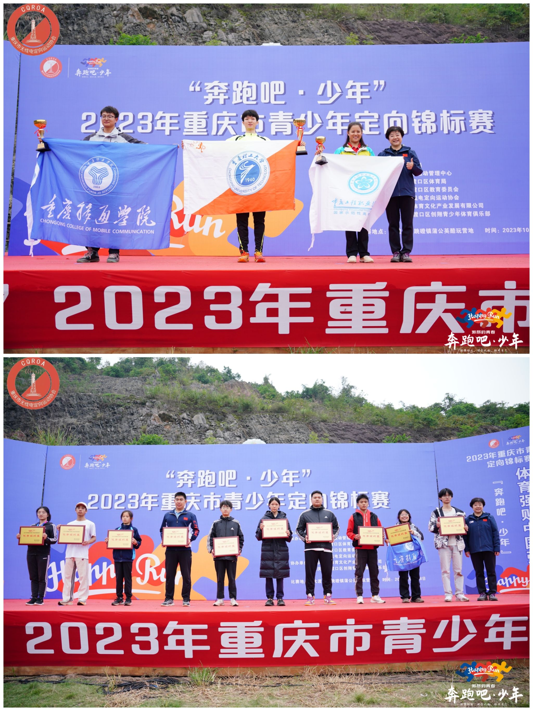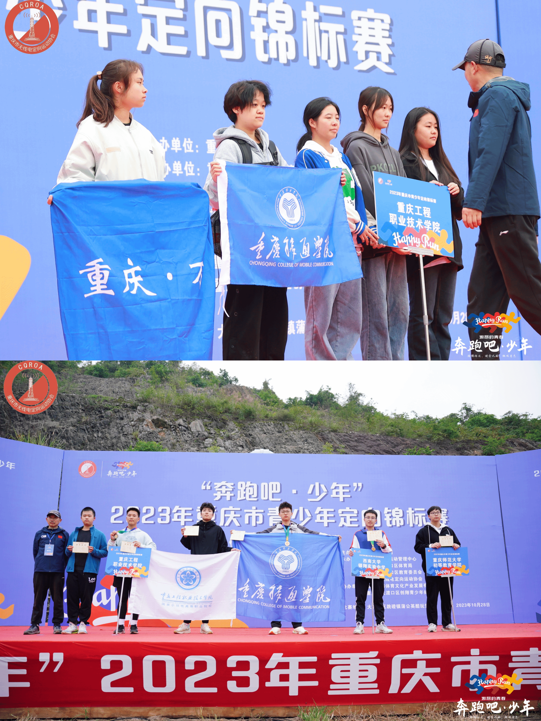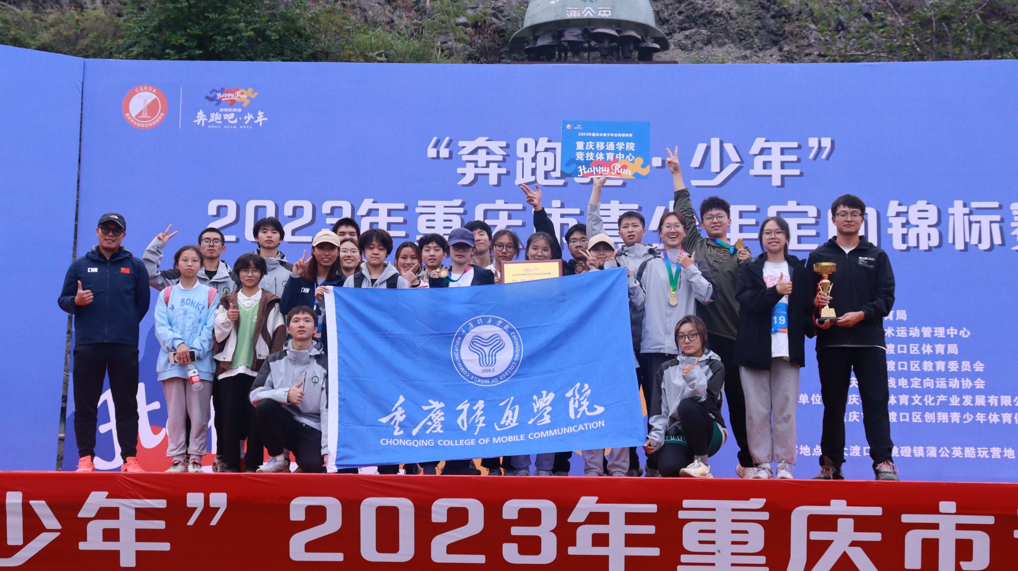 10月28日,“奔跑吧·少年”2023年重庆市青少年定向锦标赛在大渡口举行。本次比赛由重庆体育局主办,吸引了来自各学校和协会队伍22支,一共400余名高水平定向运动员参赛,是重庆定向运动最高级别的赛事。比赛设有短距离和百米定向两个竞赛项目,按照年龄设置了12个竞赛组别。我校户外运动队21名队员在竞技体育中心营地教育中心段超、王欣和林培泽三位教练的指导下,取得冠军一名、亚军一名和季军两名的好成绩,并荣获高校团体奖第二名、优秀组织奖和体育道德风尚奖。