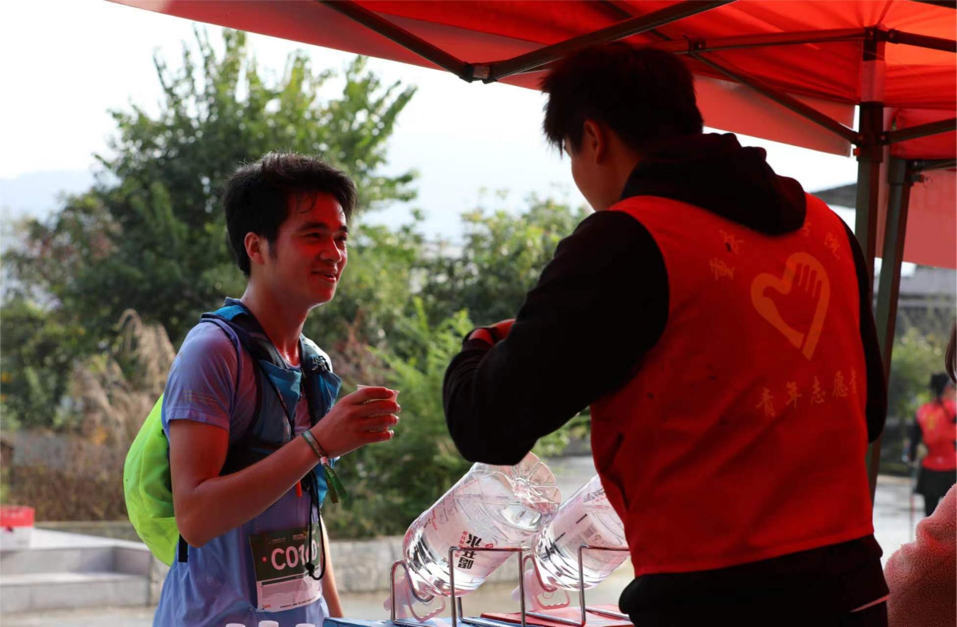 八点钟整,选手们鸣枪开跑,志愿者们也布置好现场,进行最后的休整,做好迎接这场“硬仗”的准备。九点到九点半这短短的半小时内,由近400名参赛选手到达补给站,在如此密集的人流量下,志愿者有条不紊的引导参赛选手进行物资补给,并给予参赛选手鼓励,用相机定格下他们挑战自我的美好瞬间。在完成服务工作的同时进行垃圾分类,避免对环境进行污染、破坏。