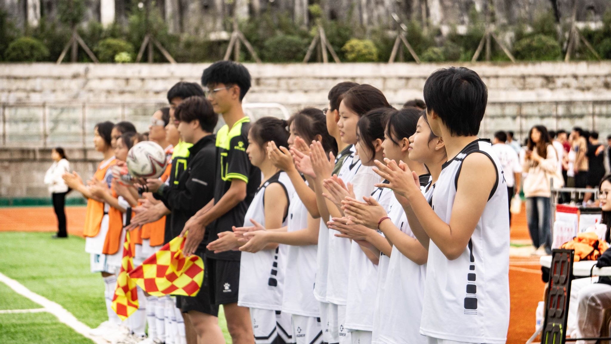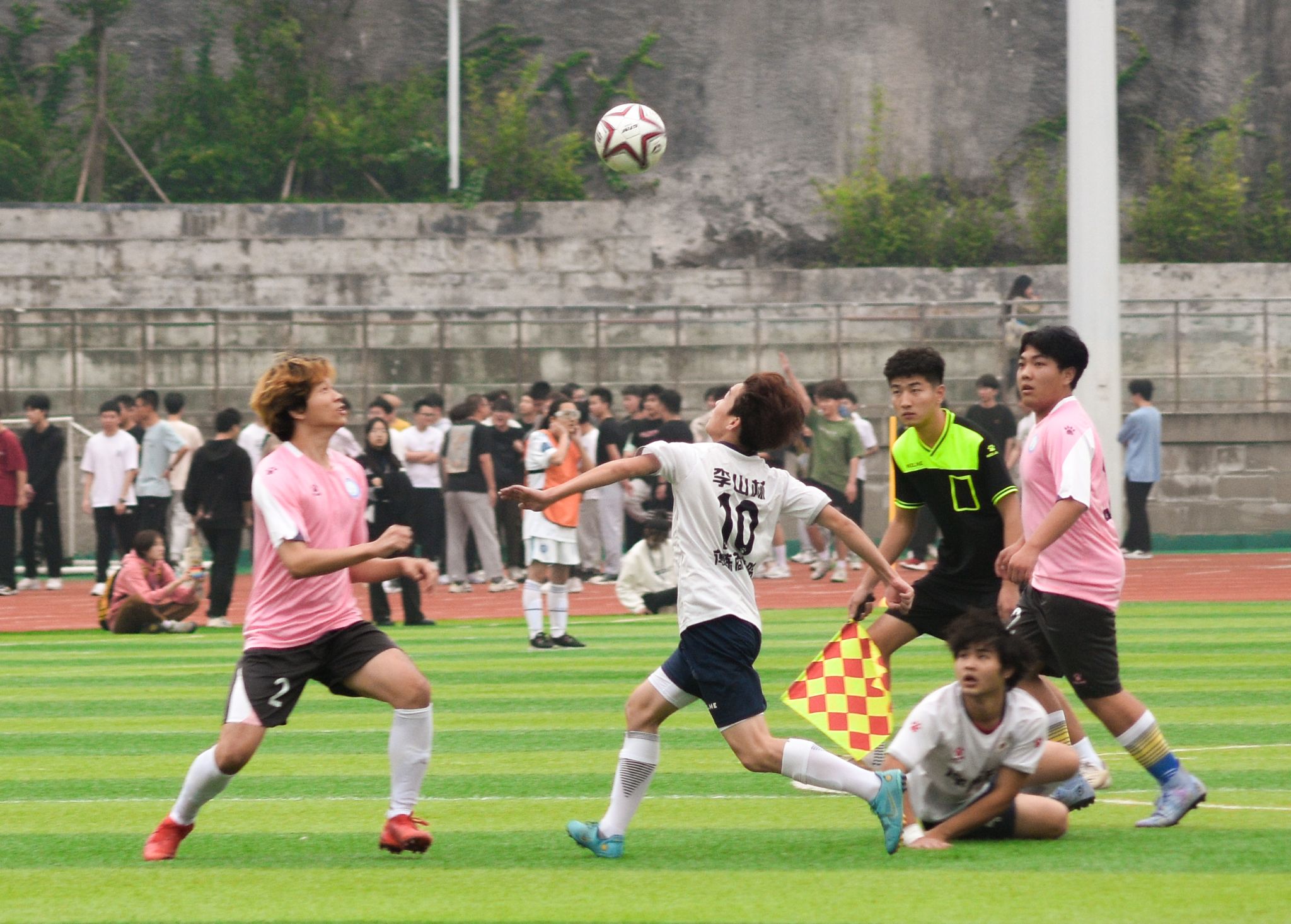 下半场双方易边再战,球员们摩拳擦掌,誓用足球讲述专属于这个年纪的风华正茂。比赛过程精彩纷呈,既有短传渗透、整体推进,又有防守反击、长传冲吊。周围的口号声、加油呐喊声交织在一起,此起彼伏,谱成了一首充满赞美、斗志昂扬的歌曲响彻在整个排球场,点燃了运动员们似火的热情。