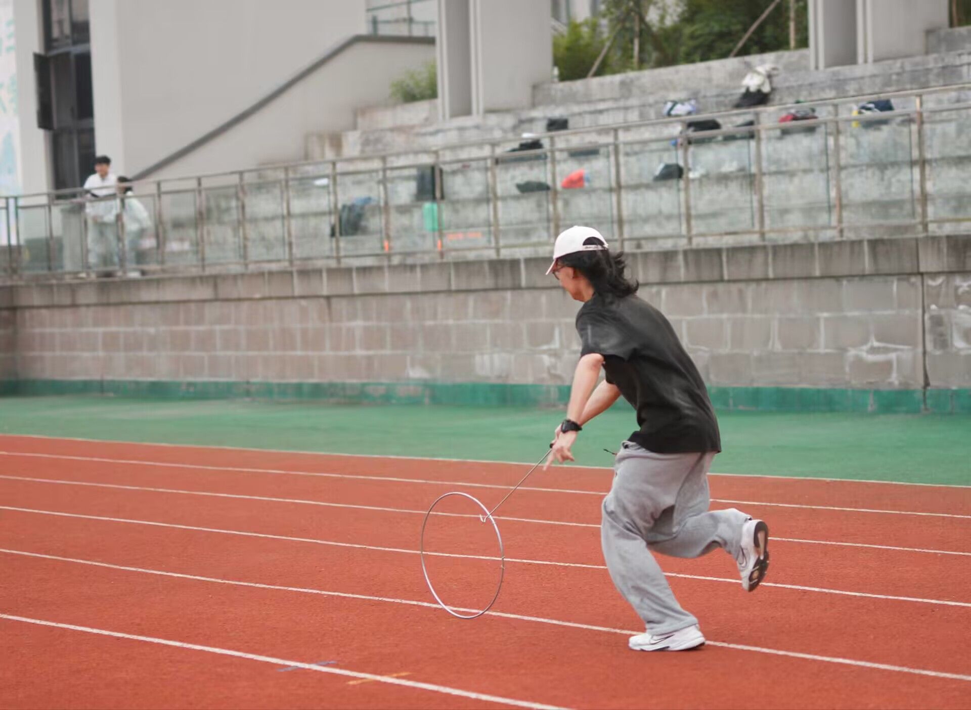 本次毽球争霸赛与长绳项目,大家已经耳熟能详。比赛一开始,毽球争霸赛的选手们就立刻抛出毽子奋力地踢了起来。只见现场毽子上下翻飞,如同一只只蝴蝶飞来飞去,场面甚是壮观。毽子与鞋子碰撞声和围观群众的喝彩叫好声交织在一起,整个比赛过程紧张有序又其乐融融。长绳比赛过程中摇绳和跳绳的选手相当默契,犹如闲庭信步,几乎没有磕绊,有的跳转腾挪,犹如飞火流星。看得场外观众惊叹不已,不约而同地为其数着个数,呐喊助威。听着场外的呐喊声,选手们更是意气风发,他们以一个个轻盈腾跃的姿势勾勒青春的活力,以一圈圈有力的挥舞奏响律动的线谱。