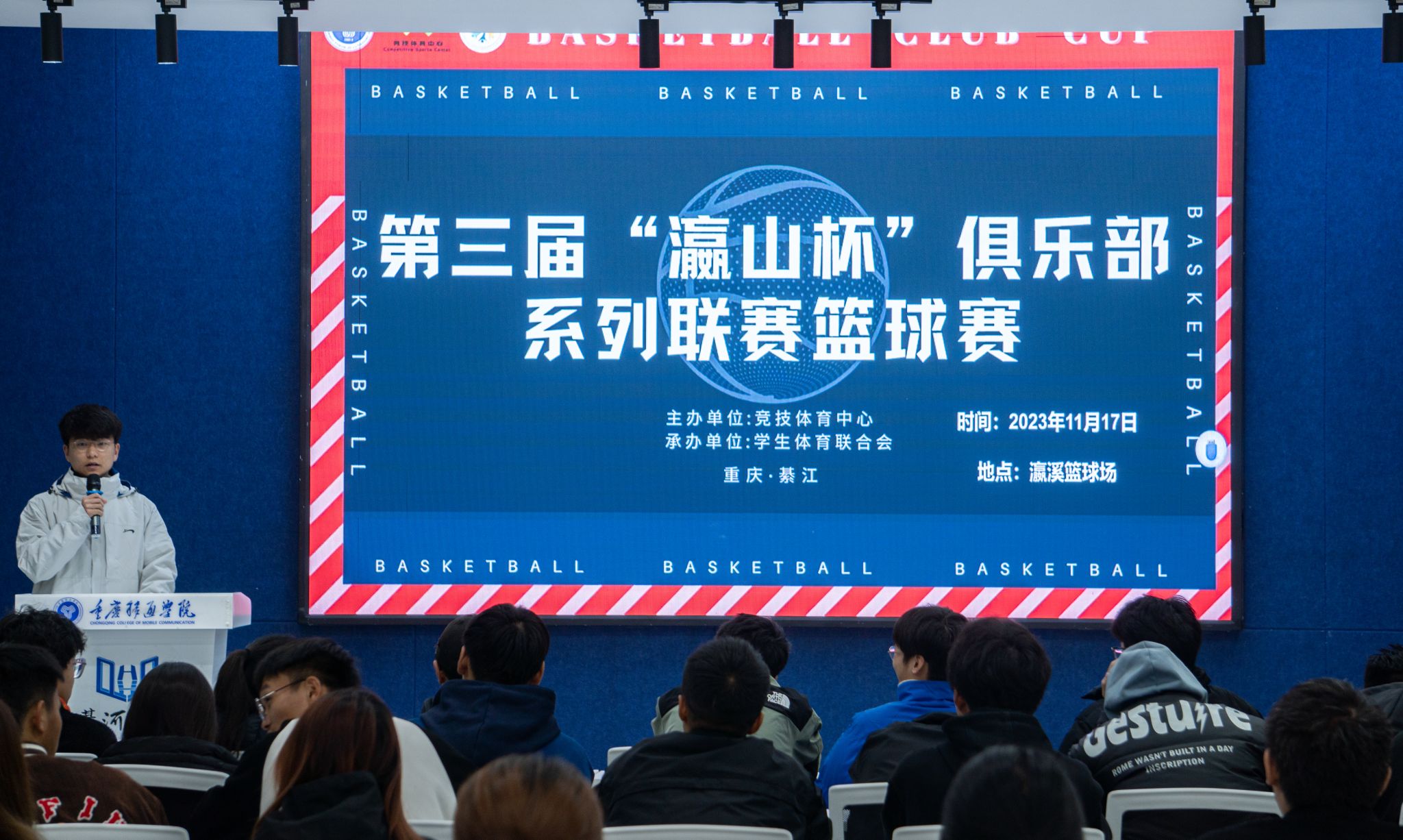 为确保我校第三届“瀛山杯”俱乐部系列联赛篮球赛如期开展。竞技体育中心于2023年11月15日12:00在綦河书院二号楼观涛·多功能报告厅召开了第三届“瀛山杯”俱乐部系列联赛篮球赛赛前联席会。本次会议主要分为赛制讲解与小组抽签仪式两个部分。其主要目的是向各俱乐部介绍本次俱乐部系列联赛篮球赛的赛事赛况,以便第三届“瀛山杯”俱乐部系列联赛篮球赛更圆满地开展。