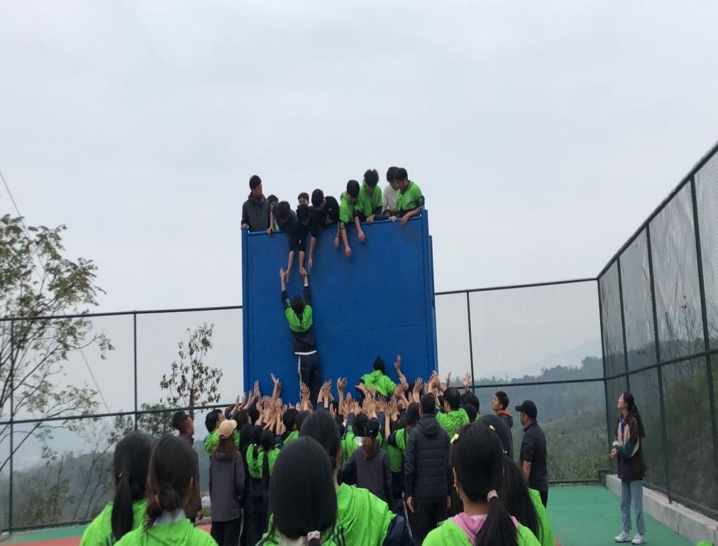 求生墙也叫毕业墙或精英墙,它是我们营地教育拓展训练课程的最后一个项目。在这个项目中,三个班没有了班级界线、没有了小队区别,就是一个大集体,一起翻越这个4米2的高墙。项目开始以后,由于同学们刚开始没有把教练的注意事项放在心上,导致后面重来了两次,让两个相信我们能够完成任务的队长受了惩罚。但是在第三次,同学们在相互配合和鼓励之下,完成了这个项目。此次的求生墙训练增强同学之间的沟通与信任,在完成挑战过程中培养出互相支持、协作配合的意识和习惯。完成了求生墙这个项目之后,同学们两天的营地教育拓展训练课程也就落下了帷幕。