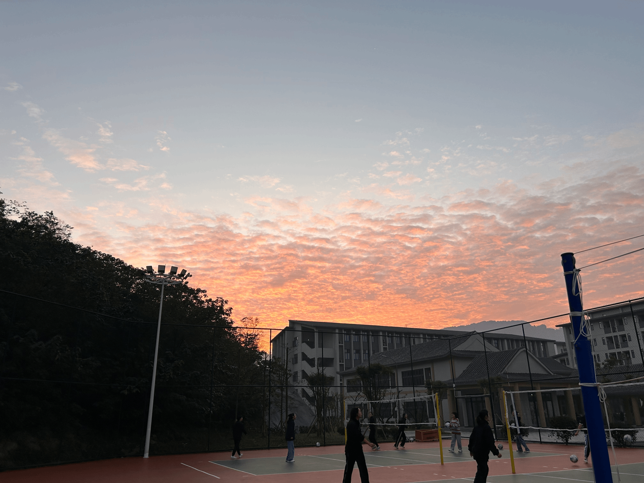 本周五,移通綦江女足照常开展了一周早训时刻。此次早训,有朝霞伴随女足队员们一同训练,朝霞红透天际,温暖而热烈,足球跟随少年,勇敢而自信。俗话说:“一日之计在于晨”,趁着黎光,女足队员们围绕着校园人工湖进行了慢跑运动,虽有冷空气的入侵,但她们坚持奋力奔跑完成了练习。晨跑拉伸后,教练利用排球场地安排队员们进行头球训练。老队员们依次有序推进练习,新队员们在头球练习中不断摸索前进,最终成果显著,大家的头球技术都得到了认可。