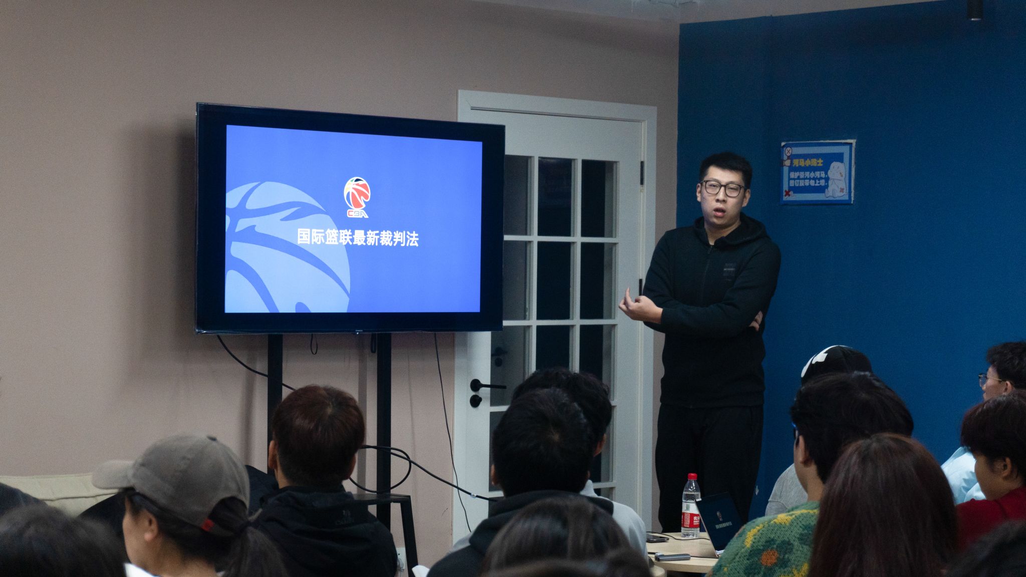 为提高我校篮球裁判的专业水平,确保能够以专业、高超的执裁水平,特邀请合川校区校男子篮球队教练杨典老师主讲,为各位裁判员答疑解惑,同学们积极参与。培训内容包含了篮球比赛规则,三人执裁,着重讲解了运动员违体吹罚,双人同时犯规。参加培训的同学们获益匪浅,执裁水平得到极大的提高。