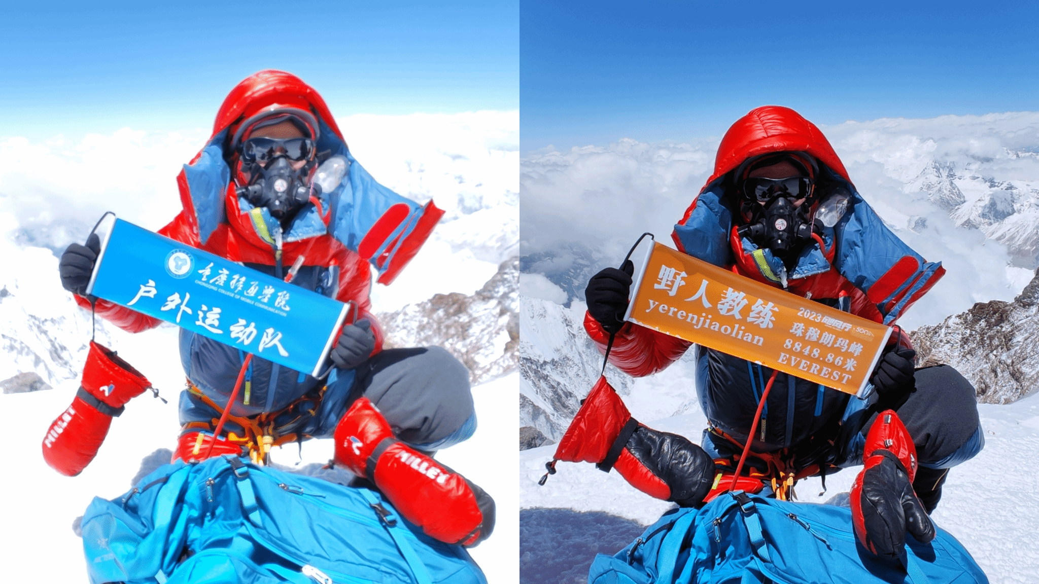 王明龙,人称“野人教练”。27年热爱,他累计骑行约30万公里,奔赴三亚、北京、拉萨等地方,在车轮上的印记越走越远、越走越高;7年努力,他从户外小白变成拥有中国登山协会师资的户外达人,在当时全国共127名,重庆仅3名;10年追求,他从不知道雪山长什么样子到带着18颗钛合金钢钉和506个人的梦想登顶海拔8848米的珠穆朗玛峰。