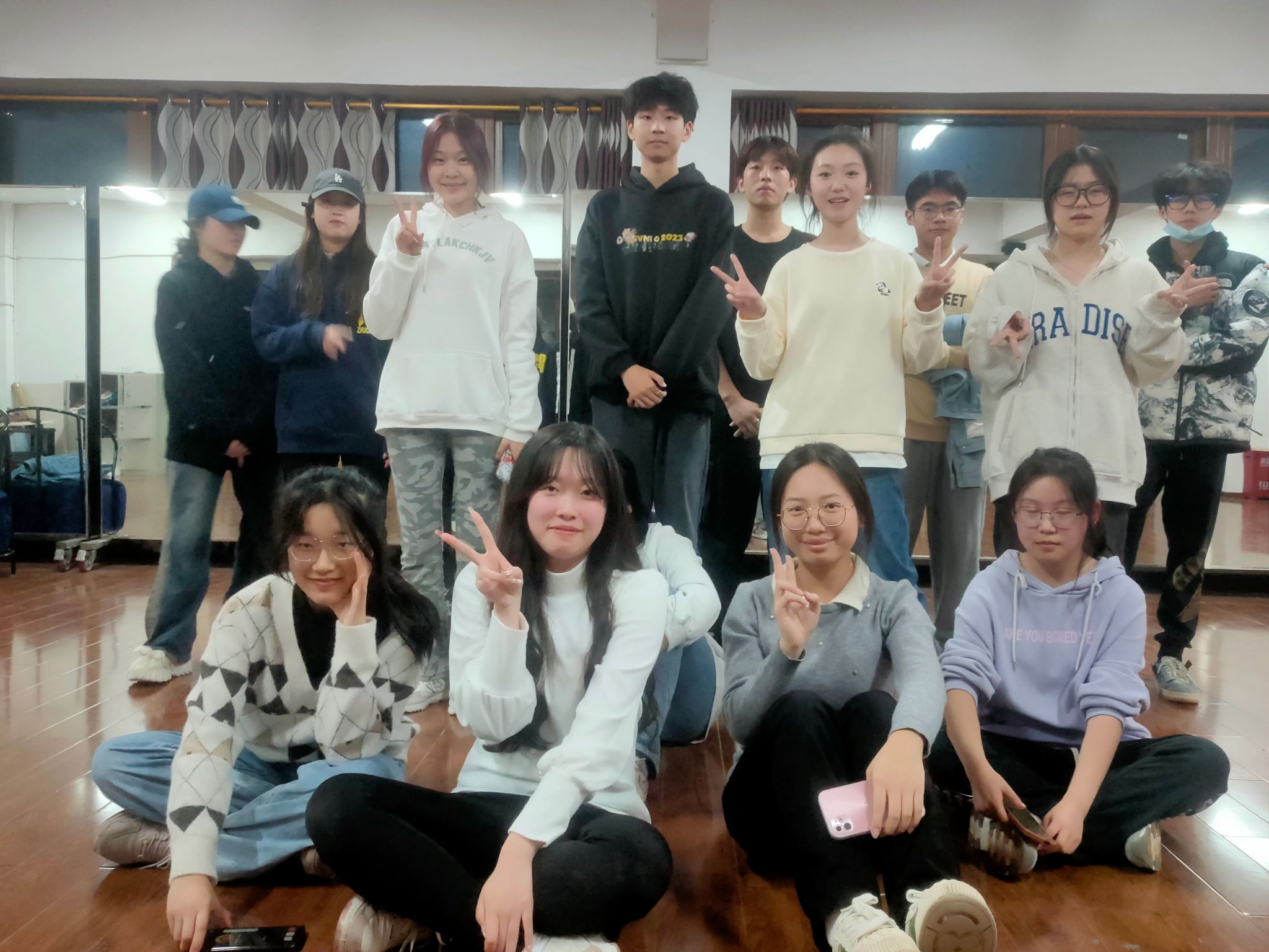 不知于月光共舞了多少时光,同学们在排练厅一遍又一遍练习,每天训练至少保持3-4小时的训练量,每一套动作都是一拍一拍一遍一遍的不断反复练习,尽管一直重复着相同的成套动作但队员们没有一丝的松懈与不认真。训练中队员们还会对比赛成套进行拍摄视频,在每一套结束后一起进行观看并讨论存在问题与对套路进行观看并讨论存在问题玉对套路进行修改与完善。不断追求卓越体现出远景学子不服输的精神,每一声“再来”是对学院荣誉的责任感,是每一位队员对自我的苛刻,是对比赛的尊重,也是对远景竞技体育精神的不断传承。