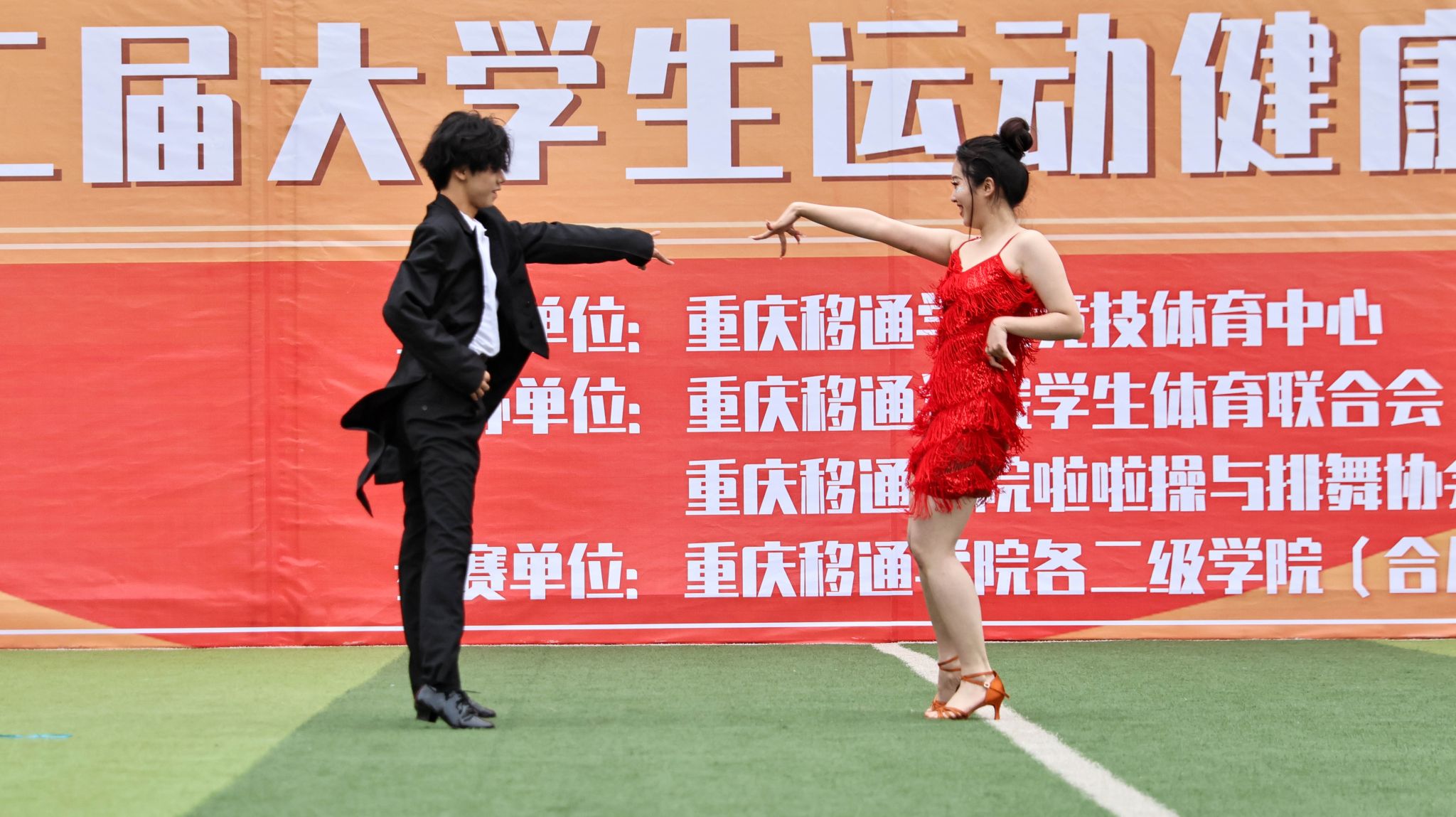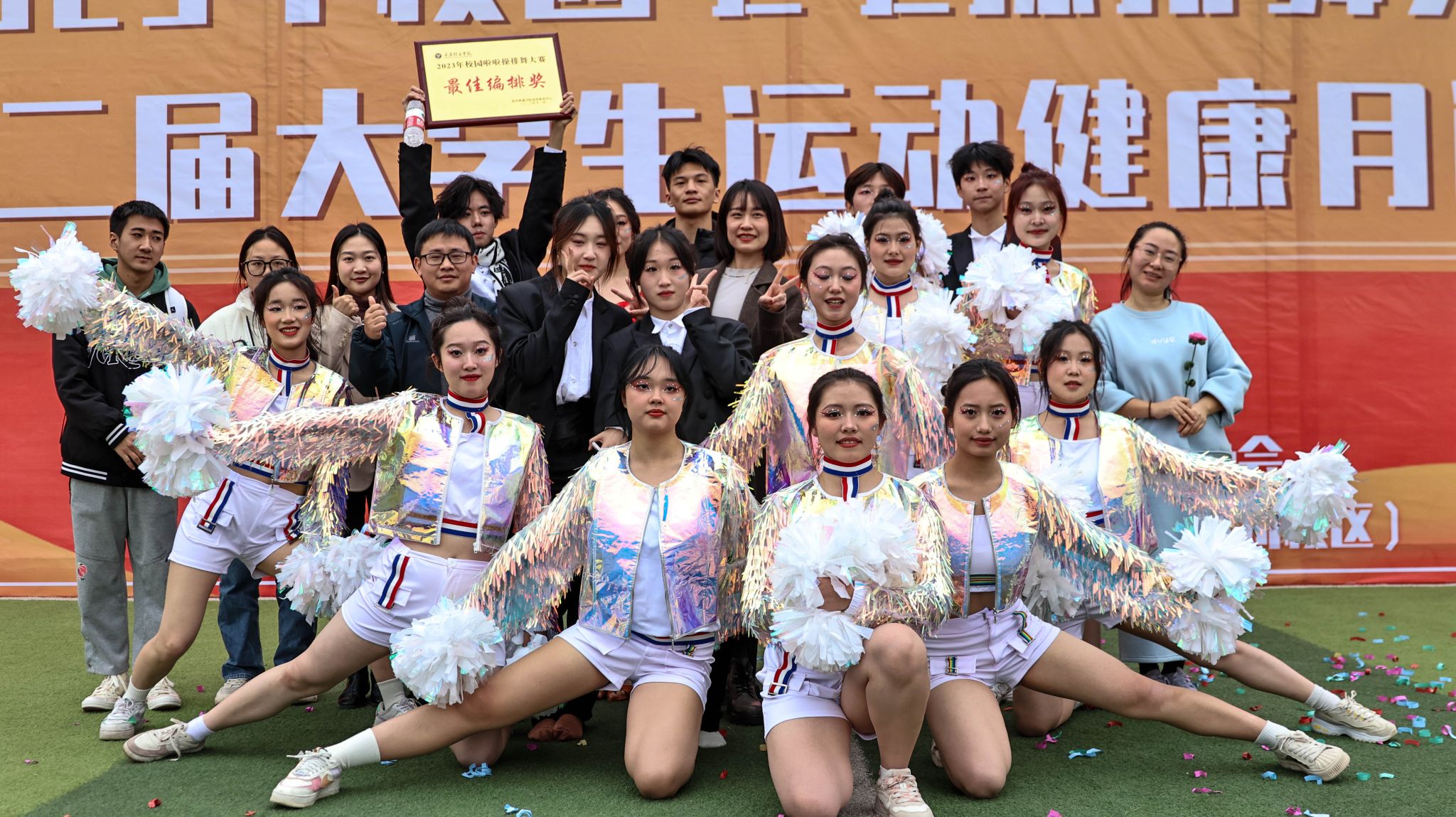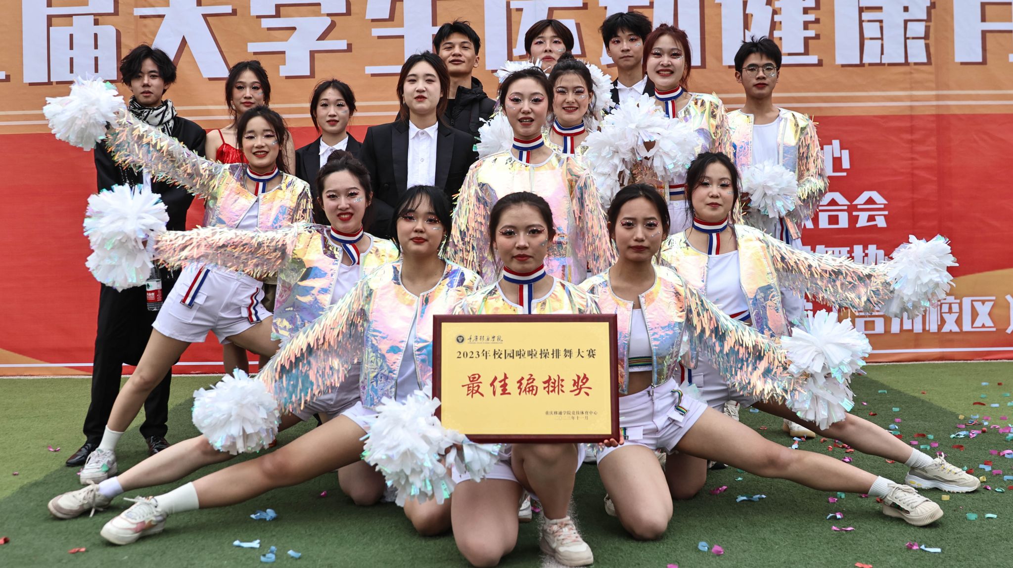 舞动青春旋律,展现生命风采。我院啦啦操全体队员于2023年11月29日15:00在b区足球场上参加了重庆移通学院举办的2023年校园啦啦操排舞大赛。