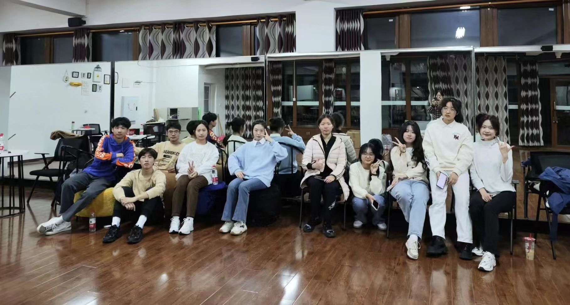 回忆起前期备赛的过程,队员们都十分感慨。在一开始的建立团队就遇到了很多的麻烦和问题,一方面远景学院的多专业特性导致很多同学的课程安排不同,无法做到同学们排练时间一致;另一方面学院的人员较少,喜好和愿意坚持的同学可选性很低,使得团队有些同学的积极度不高。面对这样的困境,舞蹈舞美部部长陈西十分焦虑,找到指导老师说明了困难,经过沟通交流后,她从思想入手,找到团队每个同学进行交流,精简队伍,为团队输送精神能量,最终确定团队队员。为了让整个团队的训练有序开展,整个团队分工明确,由体育协会干部漆亮牵头负责对接后勤物资与团队服务,舞蹈舞美部部长陈西负责团队建设与服装核定,另一名部长王子涵牵头舞蹈编排与技术指导,干事陈思燚配合部长带领啦啦操团队训练……在不断的沟通和协调后,终于开启了历时一个月的排练旅程。