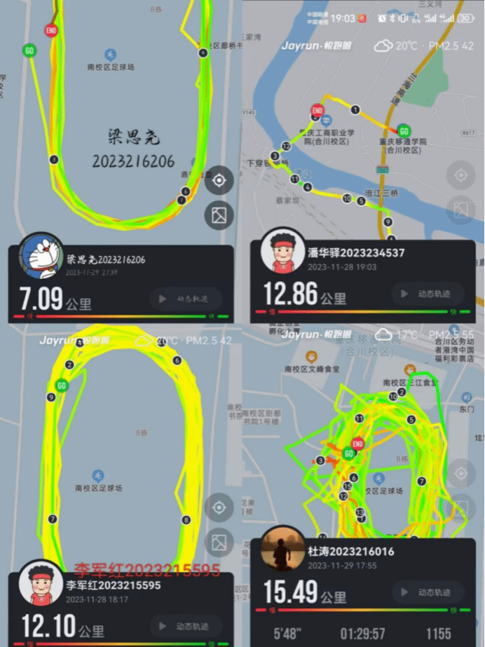 2023年12月4日,在綦江校区运动场对第一期的参与者进行了跑步里程与配速的审核。签到审核过程中,同学们洋溢的笑容和激动的心情,是青春色彩的成果,这是运动成绩的展现。