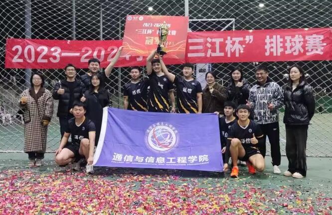 自古打天下难守天下更难,少有人可以永远站在顶峰,今年我们再一次捧起属于冠军的奖杯。2023年12月13日20:00随着比赛结束的哨声响起,通信与信息工程学院排球队获得了2023-2024学年三江杯排球赛的冠军,又一次捧起了这沉甸甸的奖杯,这是学院第6次捧杯。