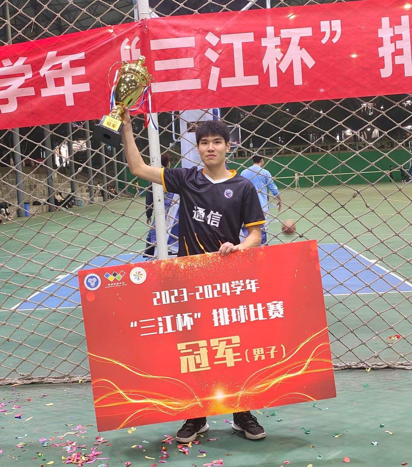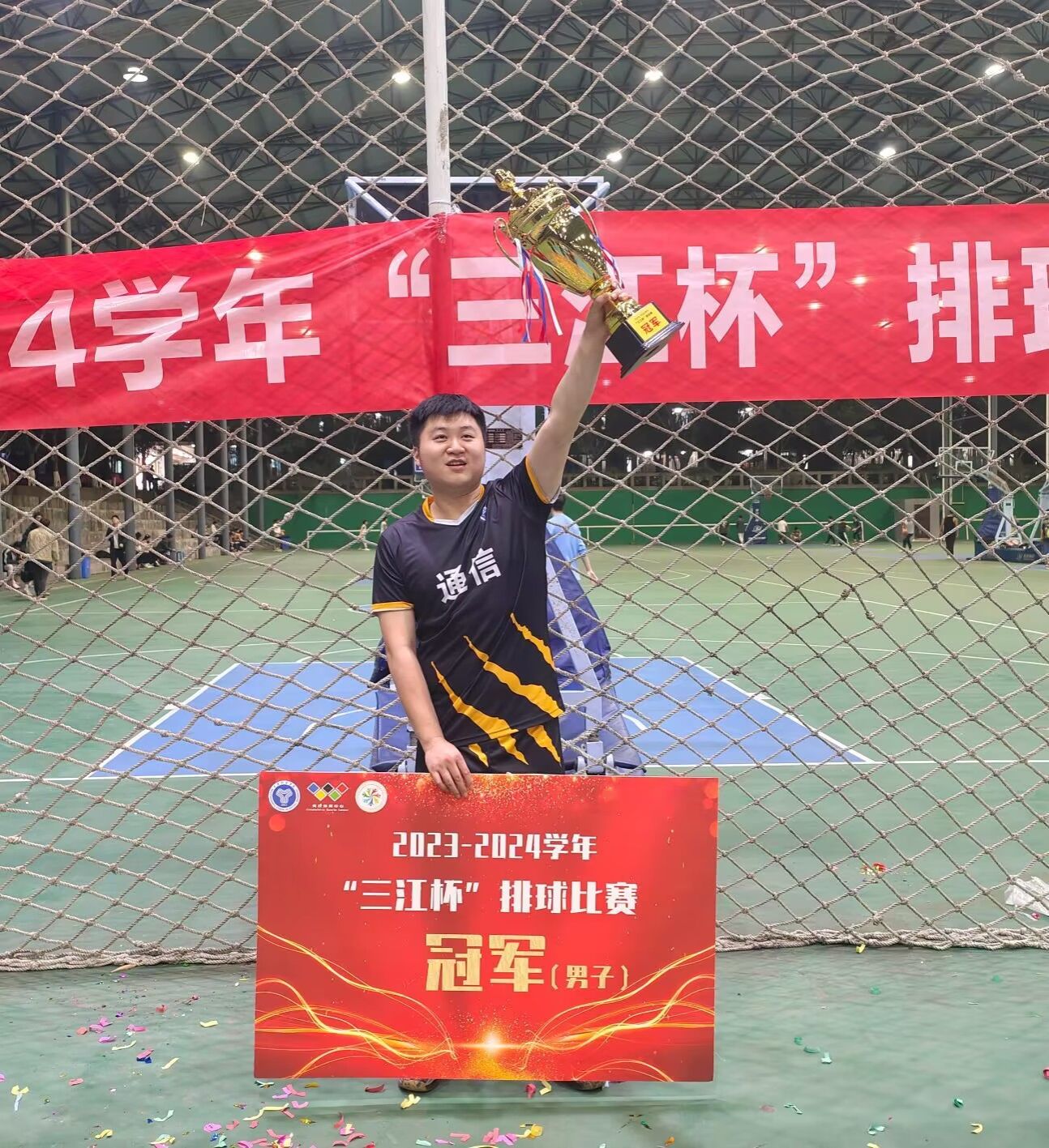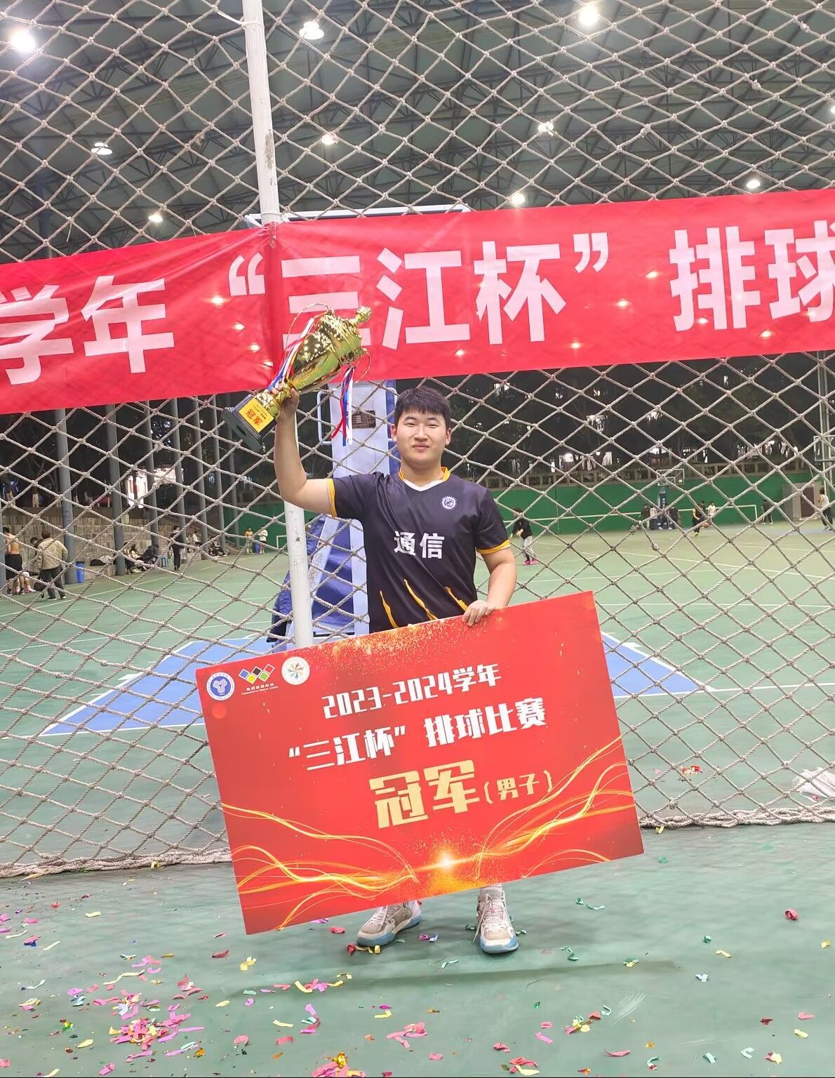 在今年“新生杯”排球赛上,我队最终在决赛的赛场上遗憾负于智能工程学院。遗憾与不甘的泪水在那一刻落下,也从那时起,我心里埋下了一颗“种子”——三江杯中卫冕冠军。为迎接那天的到来,我不断提升自我能力,不断激励自己。故事的结尾也没有辜负我,在团队共同努力下,我们成功第六次卫冕男排冠军。当然这离不开老师们的关心和帮助,离不开赛方工作人员辛勤付出,更离不开整支球队所有成员的拼搏!