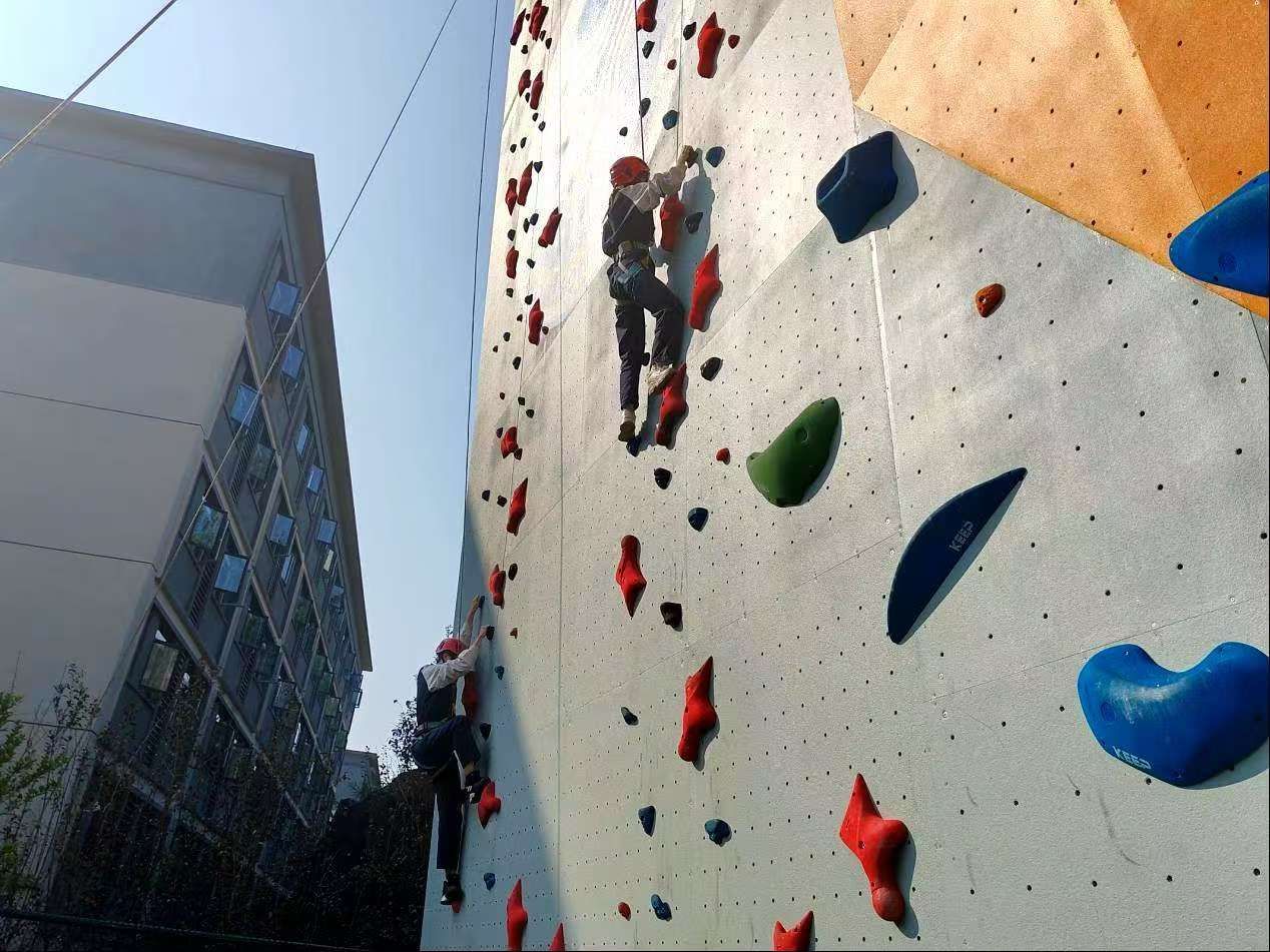 攀岩项目不仅考验同学们的体力和意志,也为他们提供一个克服恐惧、培养坚持不懈精神的机会。通过努力尝试,大家明白勇往直前的重要性和价值,无论是否能够成功登顶,只要在过程中付出过努力,就不辜负自己的付出。攀岩所带来的不仅是身体上的挑战,更是心灵上的锻炼,激励大家在未来的旅程中不断超越自我。