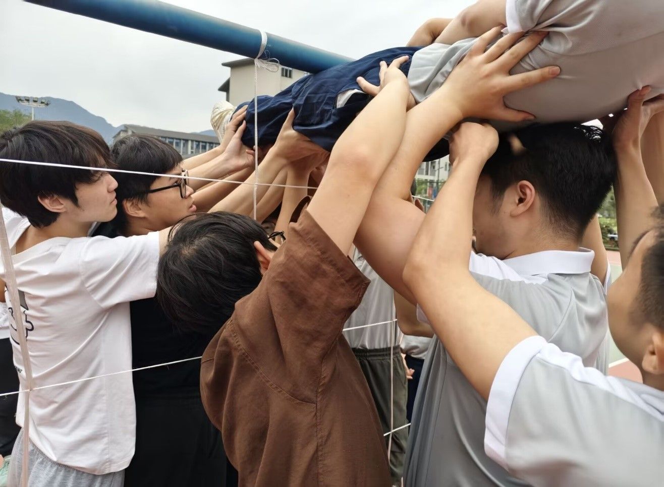 项目开始,教练在一个开阔、安全的环境中,利用特制的道具,模拟出一个具有不同高度、不同大小网眼的高压电网供学员进行挑战。在整个项目的挑战过程中团队成员都需要高度参与以及注意力的高度集中。这不仅是一场体力与智慧的较量,更是一次心灵的洗礼。它不仅提升团队队员的个人能力和团队凝聚力,也促进团队成员之间的理解和信任。同时让大家体会到团结协作的力量,还学会在挑战中相互支持,共同成长!
