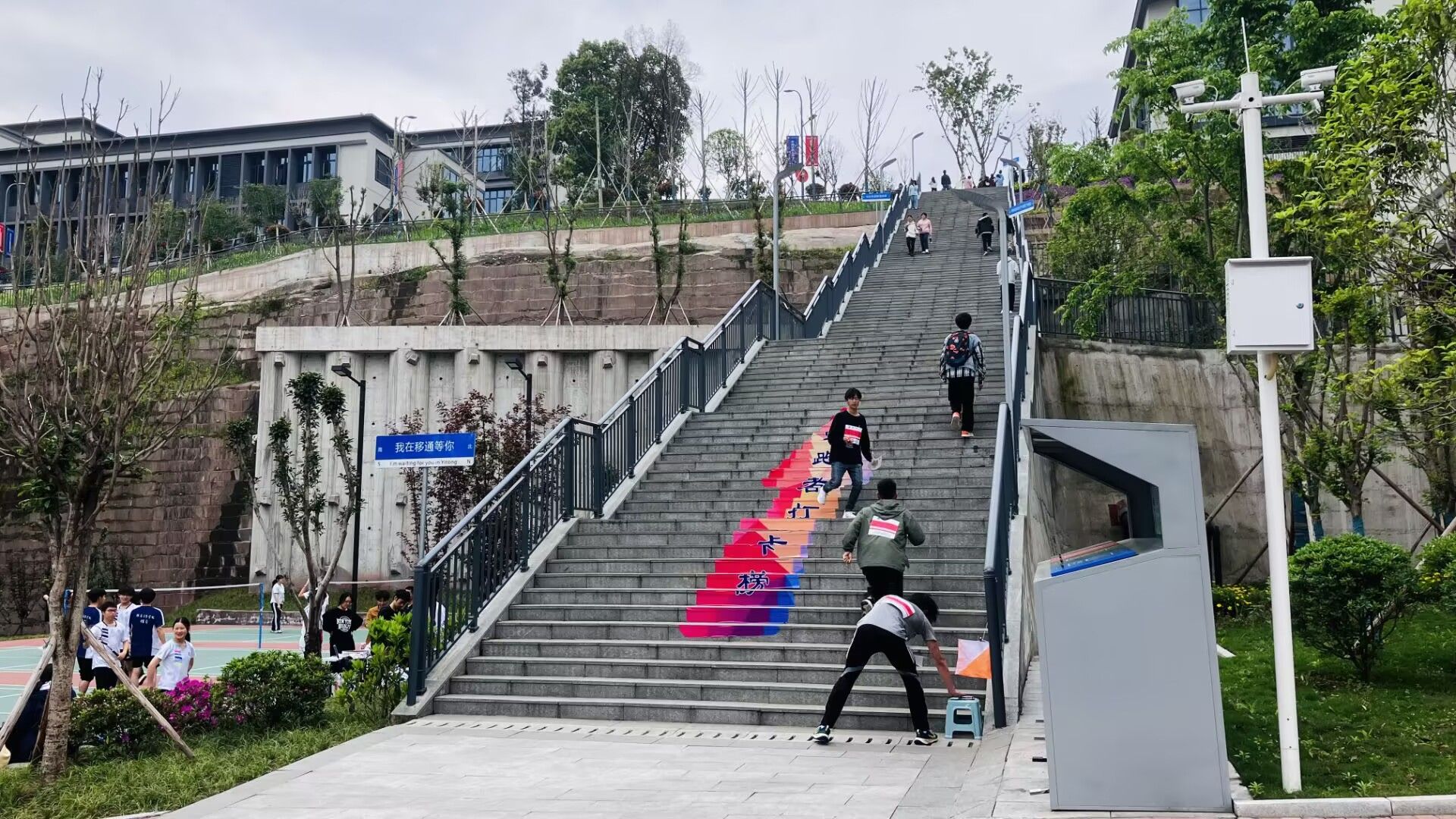 我校户外运动队队员以饱满的热情欢迎远道而来的朋友们,并邀请他们观赏重庆移通校园风光,由于重庆移通学院多楼梯、多上坡的特色地形,成都体育学院的师生们在游历校园时感叹道:“感受到了来自山城的震撼,重庆移通学院(綦江校区)坐落在老瀛山对面,每天都能看到这样美的景色,好幸福呀!”。