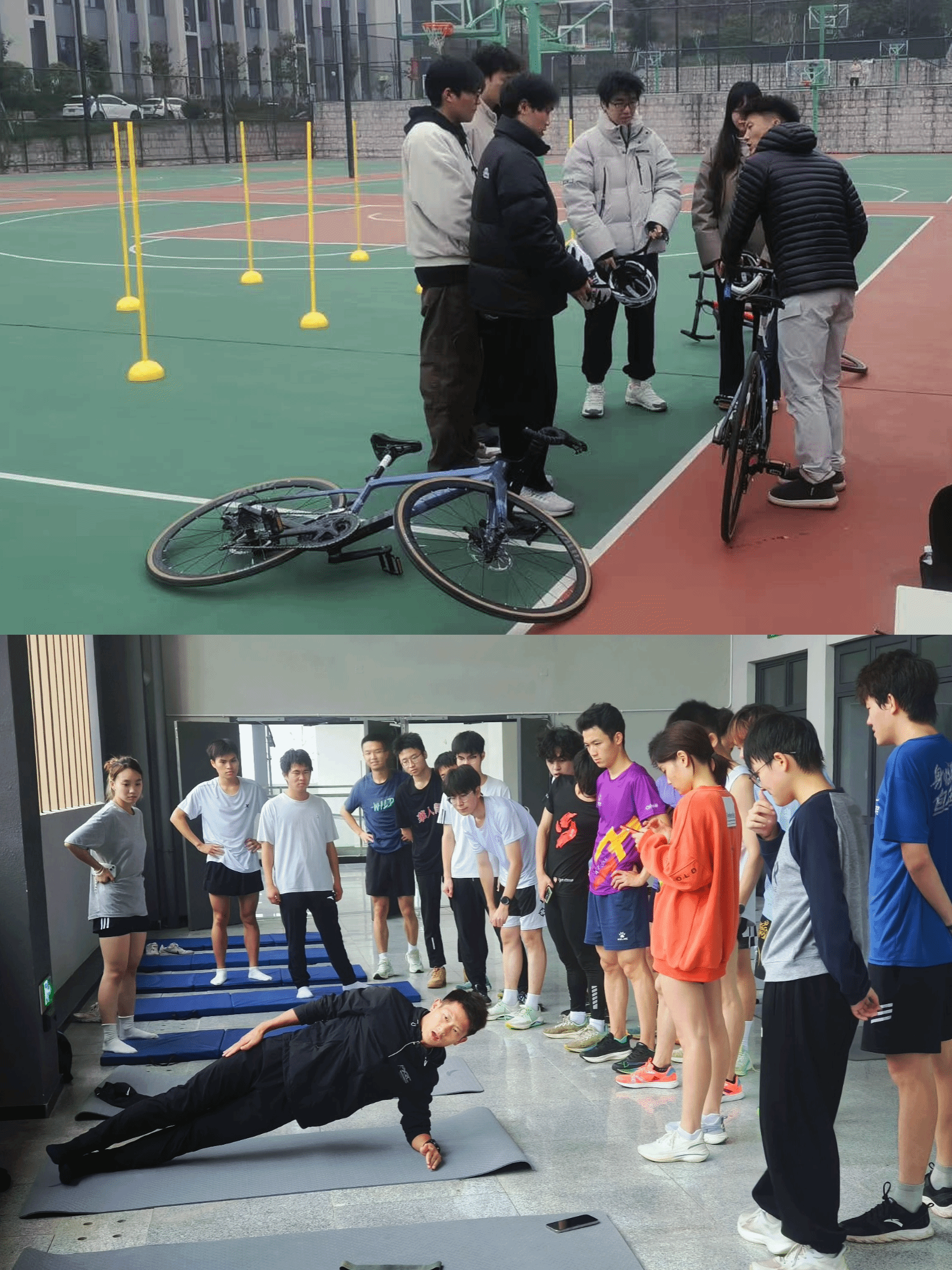 教育与训练并重,马明秀教练在我校开设铁人三项竞赛组织与裁判选修课课程,覃桂都教练倾心打造自行车运动与技术课程,为学生们拓宽知识视野、提升专业技能筑牢根基,全方位助力队员在铁人三项运动领域的深耕细作。