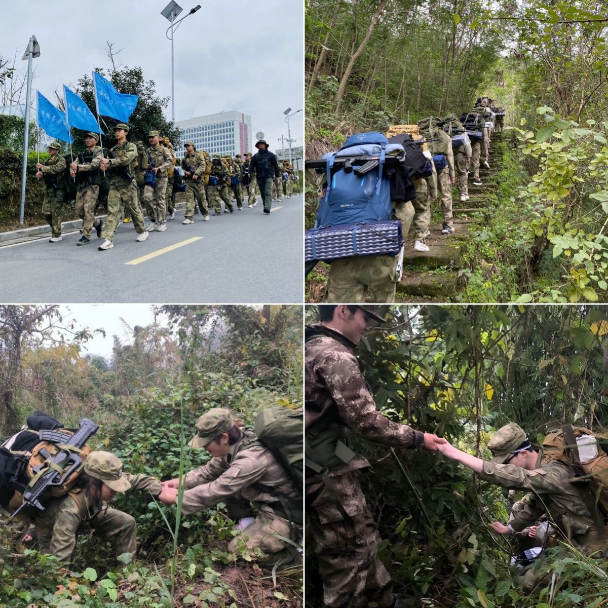 重装徒步登山项目是本次训练营的重头戏。队员们背着沉重的行囊,踏上了充满挑战的徒步征程。面对前方复杂的山路、锋利的荆棘和陡峭的悬崖,队员们并没有退缩,而是相互扶持,保持着高昂的激情前行。