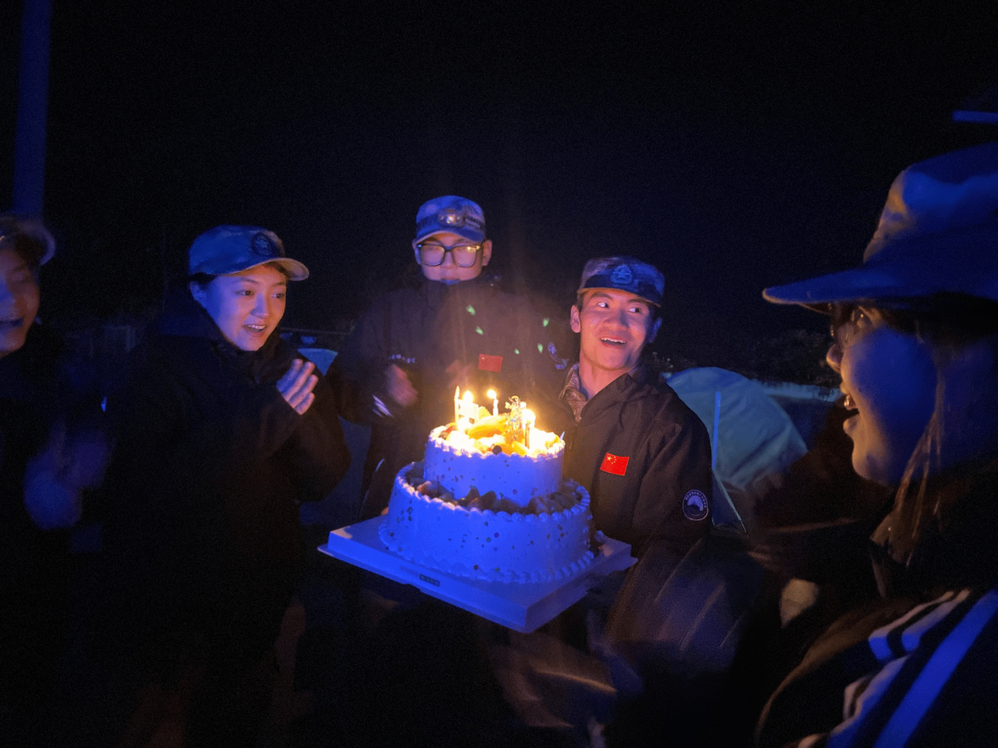 火光摇曳中,还有一份特别的惊喜,为近期过生日的队员准备的一份生日蛋糕。躁动间,大家纷纷送上真挚的祝福,满是温馨与感动。这份意外的惊喜不仅让队员们感受到了团队的关怀与温暖,也为整个“淬炼”领导力训练营画上了一个圆满而难忘的句号。
