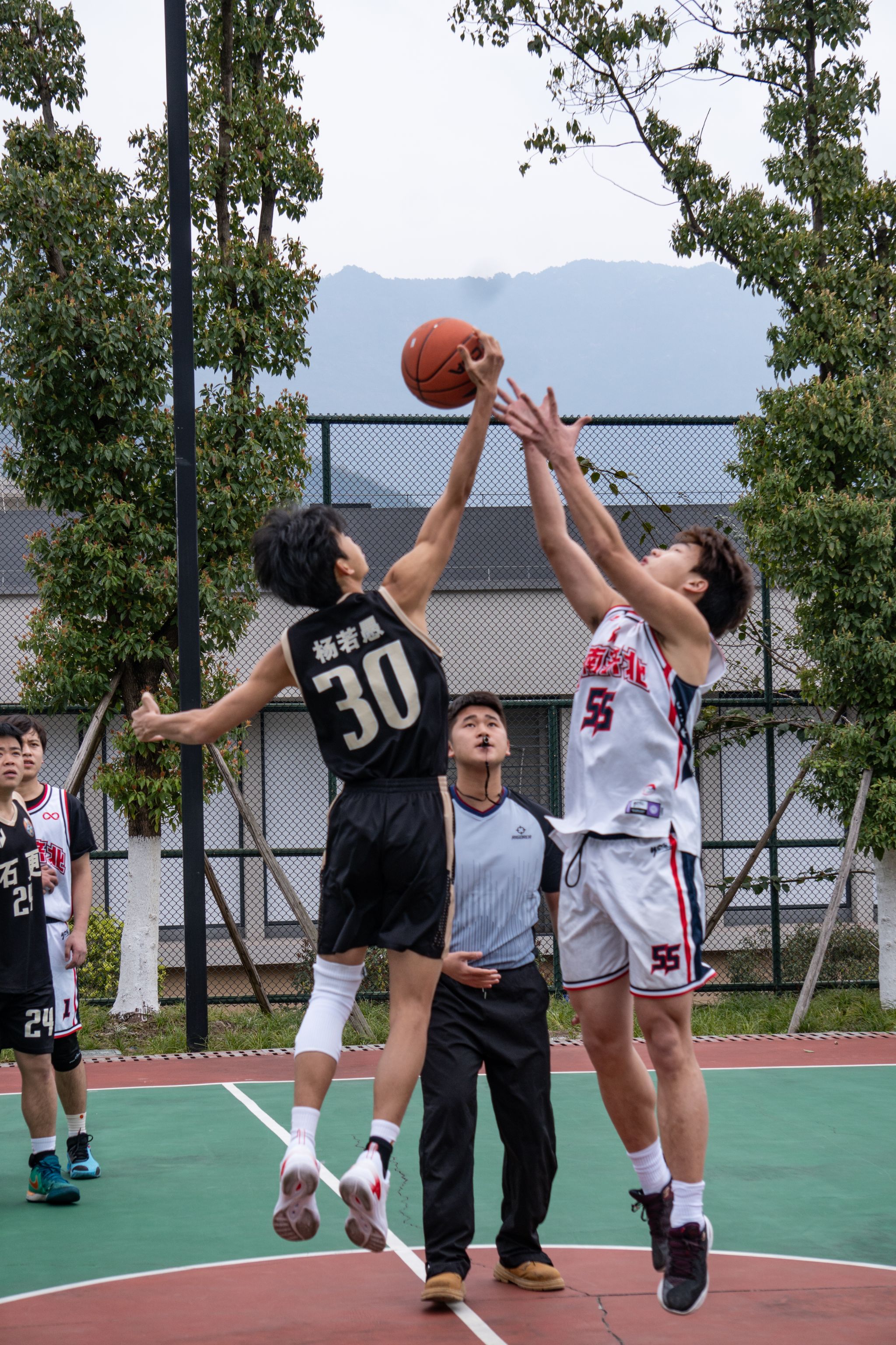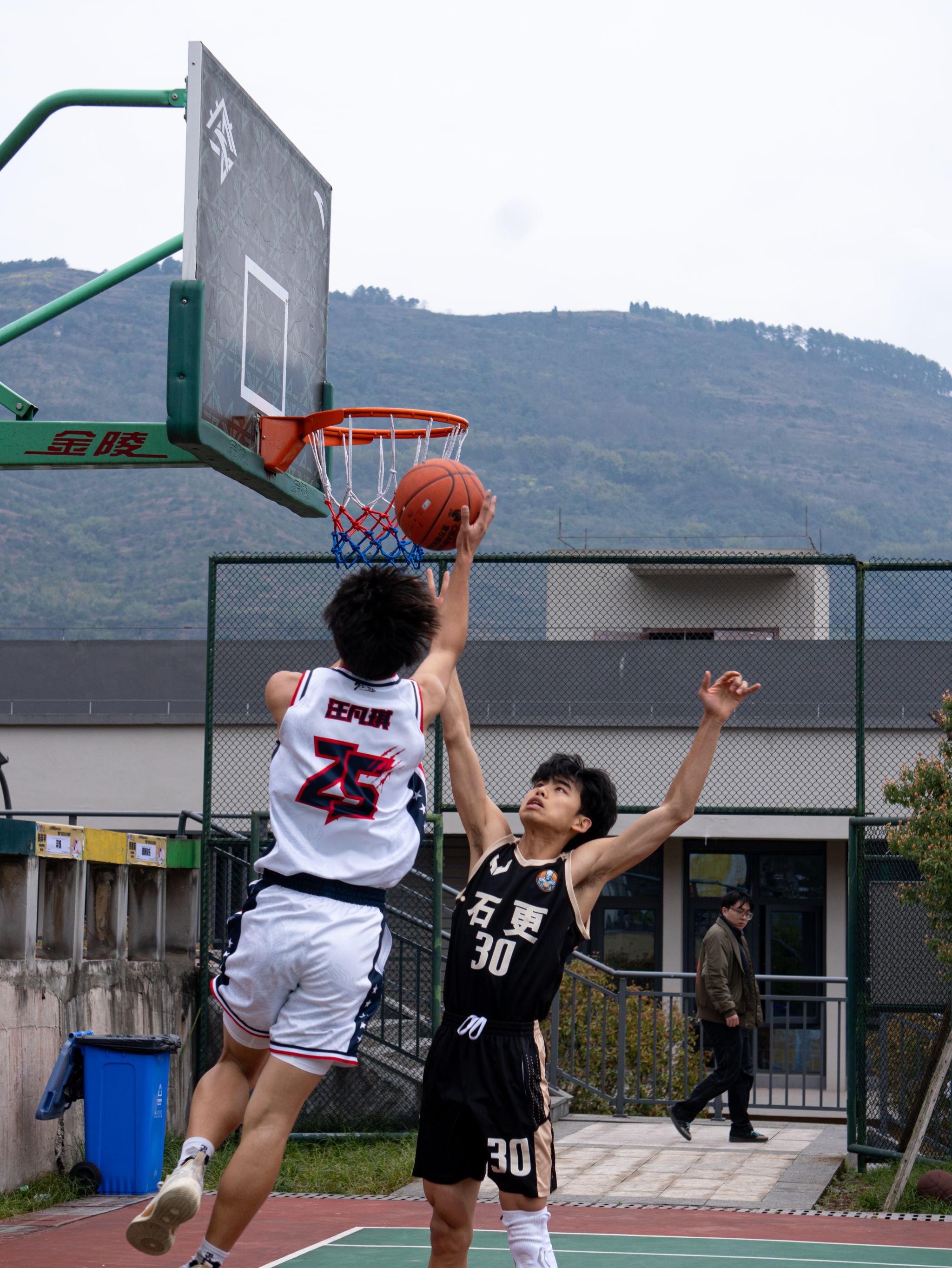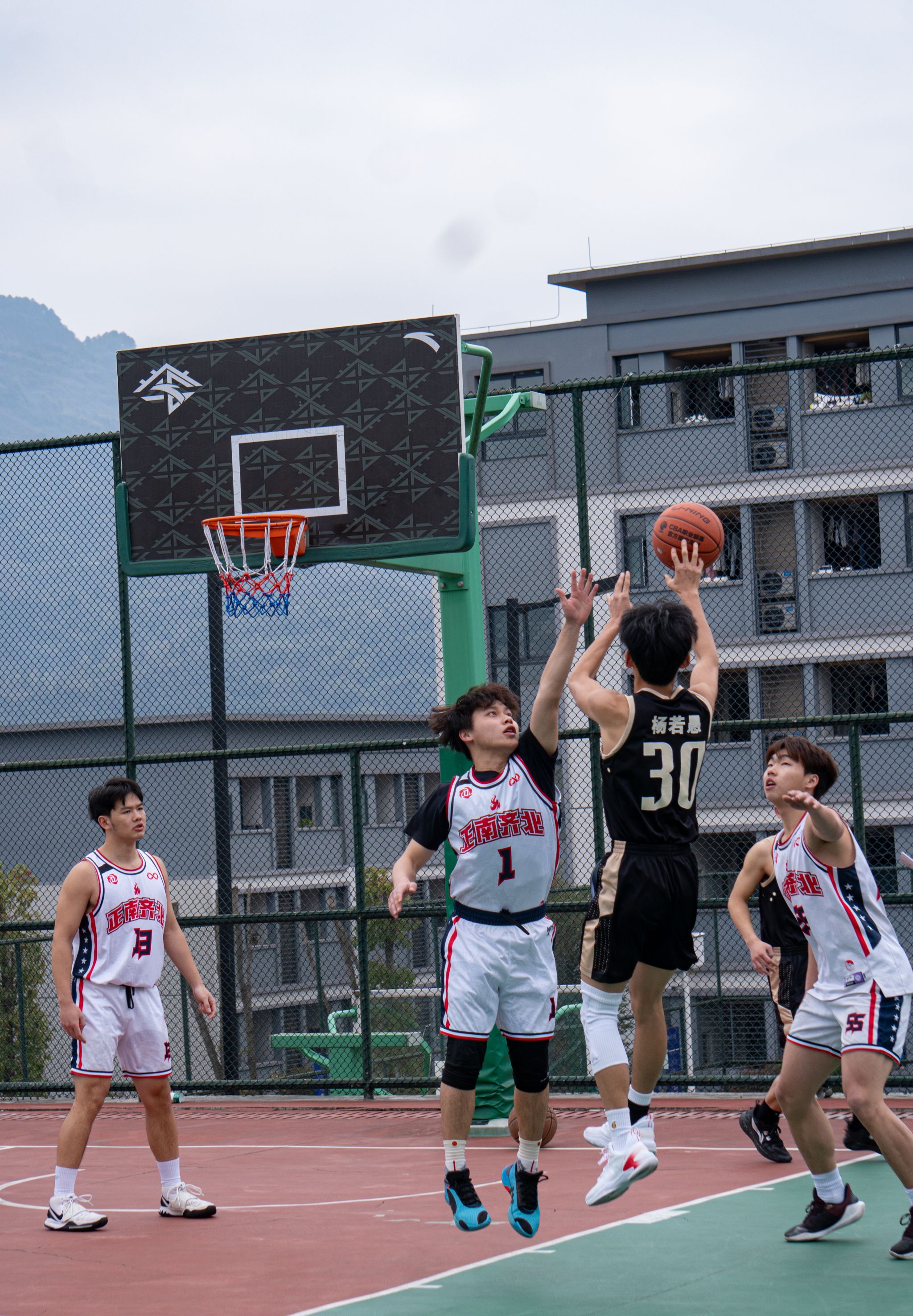 篮球在空中划出优美的弧线,汗水在阳光下熠熠生辉,碰撞声与呐喊声交织成一曲热血的战歌。“瀛山杯”俱乐部系列联赛男子篮球赛揭幕战在瀛溪篮球场激情上演。“瀛山杯”俱乐部系列联赛积极响应国家“全民健身”和“健康中国”战略号召,通过体育赛事推动同学们参与运动,增强体质,提升健康水平。这不仅是一场篮球盛宴,更是对国家号召的生动实践,为篮球爱好者提供了展示自我的舞台,通过竞技与交流,促进团队协作精神的培养,增强参与者的身体素质。今天正南齐北队对阵石更队,old man队迎战快乐篮球队,两场对决同时打响,瞬间点燃了全场的篮球热情。