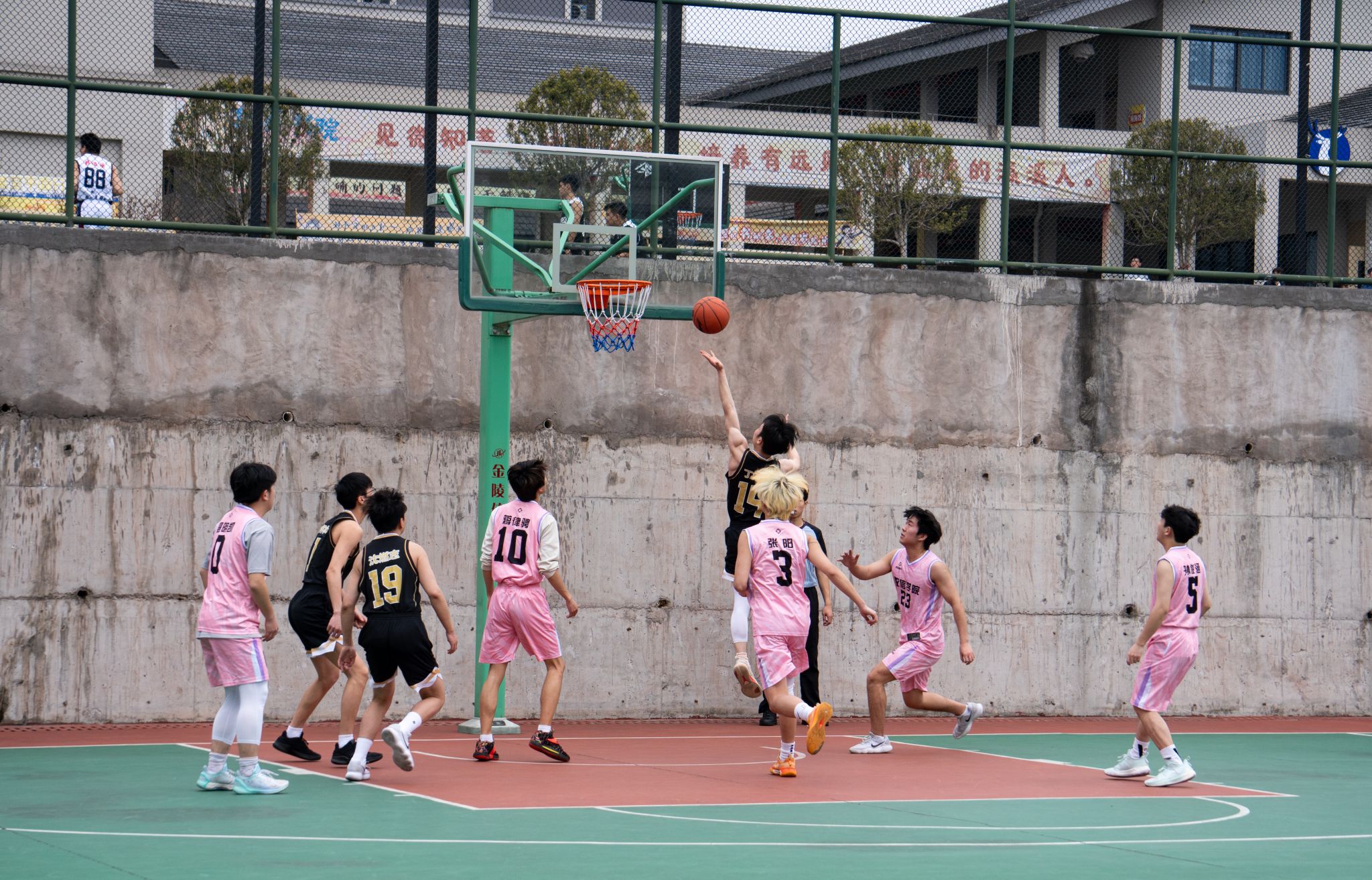 另一片场地上,old man队与快乐篮球队的对决同样精彩。比赛伊始,双方有条不紊地组织进攻,利用默契配合寻找最佳出手机会。面对old man队的稳健防守,快乐篮球队毫不畏惧,凭借速度与灵活性展开全场紧逼,抓住对方失误迅速发动快攻反击。