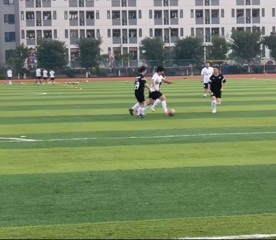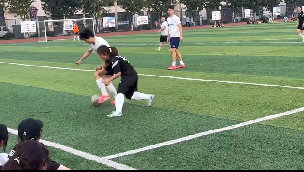 青春热血与沉稳智慧的交织,女足队员用青春的朝气点燃体育梦。女足队员在持球情况下,大胆的运用假动作,变向突破,塞球过人;前场队员积极呼应,主动要球,传球、导球、变换进攻方向,将训练成果展现在赛场中;在丢球后,积极回抢,敢于向老师们寻求身体上的对抗;通过相互提醒与观察,阻断对方的进攻。赛后龚思文老师对女足队员积极抢断的行为和球场上的进步作出了赞扬。本次友谊赛不仅是一场竞技较量,更是老师们在这条通往梦想的道路上为队员们传授智慧与经验。