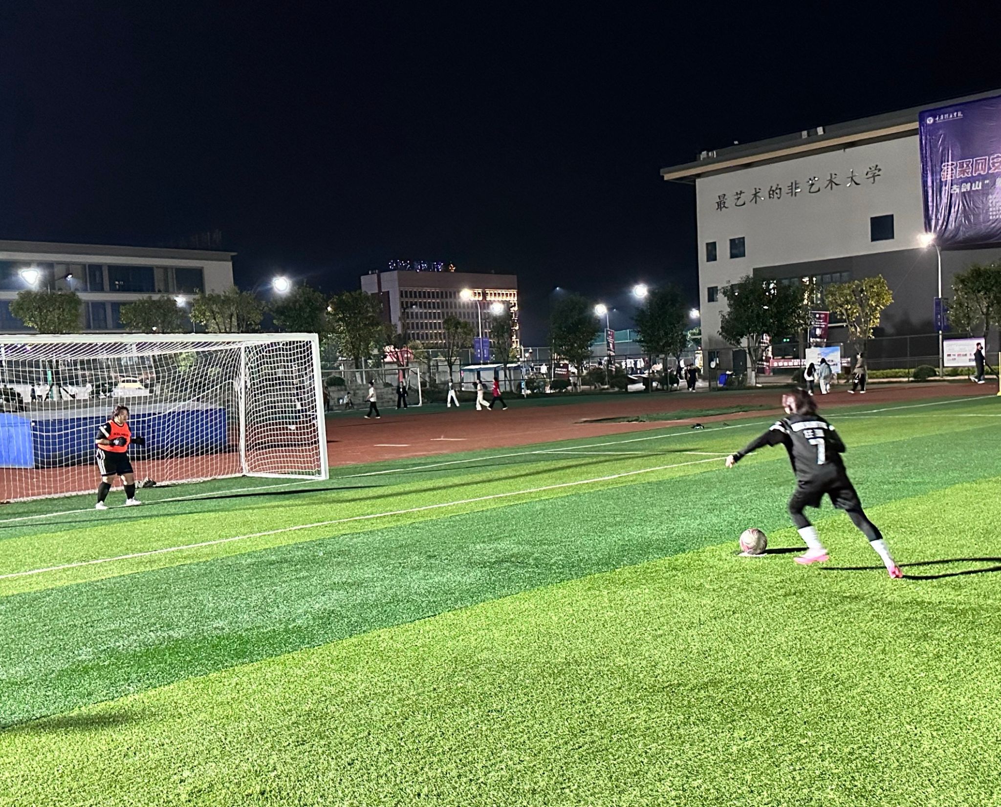 为了检验女足队员的训练成果,同时促进师生间的跨领域交流,此次比赛通过“以赛代练”的形式,做到发现问题、解决问题。教职工在球场上每一次传球,身体的对抗,进攻路线的规划,都是在为女足队员现场的教学,希望队员们能运用在将来的比赛中。女足队员虽在技术、经验和身体上和教职工们有很大的差距,但队员们仍旧保持积极的拼抢,做好每一次的进攻、防守,将平时训练的成果展现在赛场上,充分体现女足精神。