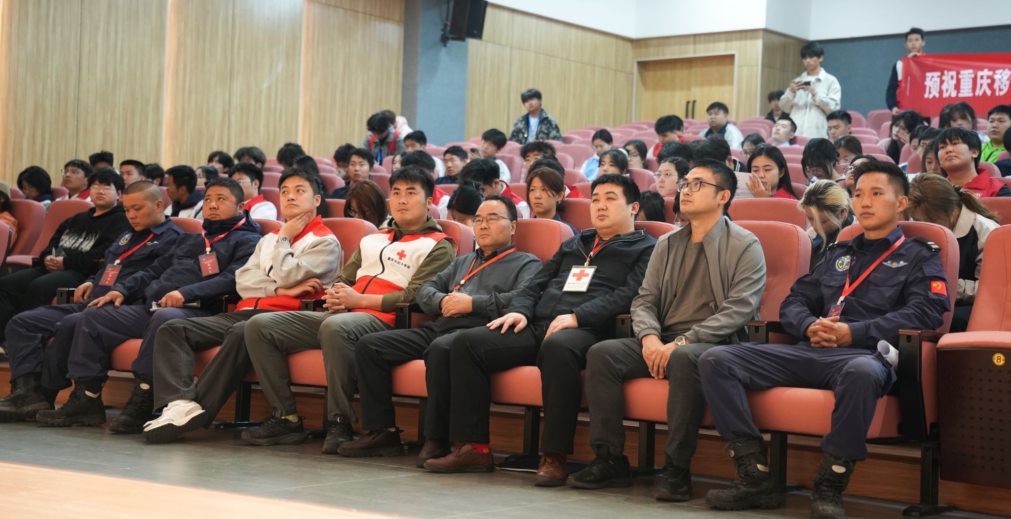 为保障赛事的高质量开展,大赛组委会积极整合校内外资源,活动筹备阶段,组委会联合綦江曙光救援队、綦江去红十字会等校外专业团队,为参赛选手提供赛前培训和技术指导。赛事物资配备齐全,包括医用担架、呼吸面膜、无菌敷料等专业设备,部分器材由校内外单位支持借用,确保竞赛贴近实战需求。大赛邀请重庆市綦江区卫生健康委党委委员、重庆市綦江区红十字会常务副会长李维学先生,重庆市綦江区红十字会工作部部长、秘书长张迁俊先生,綦江曙光救援队队长陈薪吉先生,重庆移通学院安稳办主任、保卫处副处长谈胜老师,竞技体育中心副主任江华老师,营地教育中心主任王碧铄老师莅临指导。裁判团队由綦江区红十字会专家、校内红十字会师资及行业资深人士组成,仲裁委员会全程监督,确保评分公平公正。