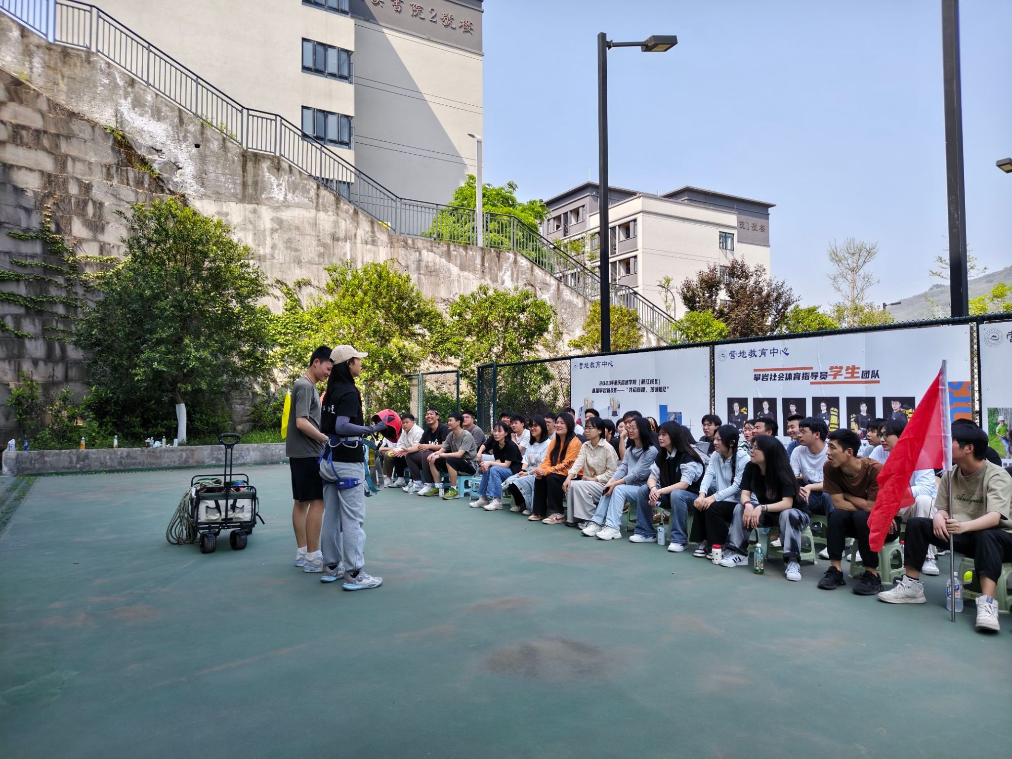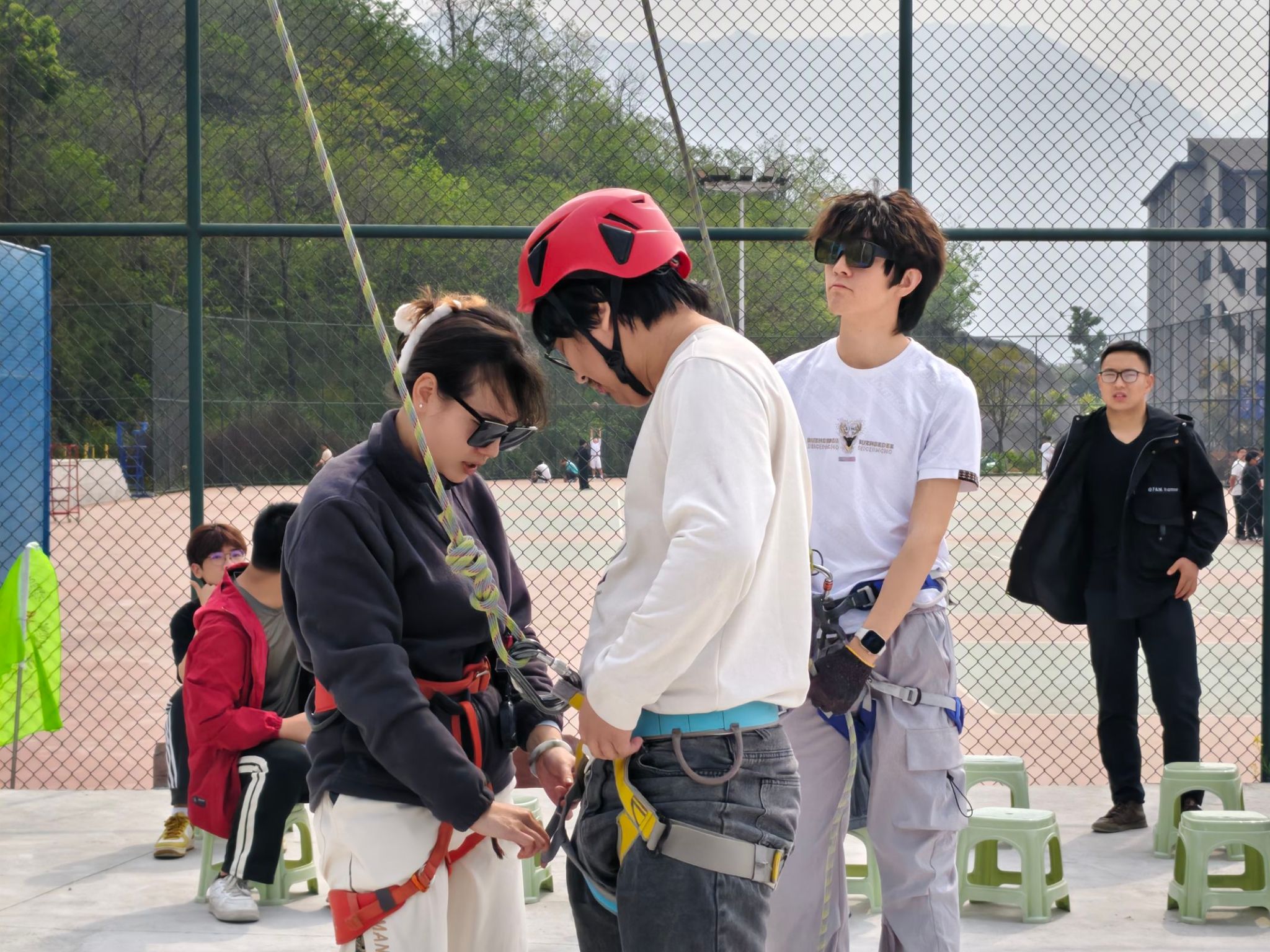 4月8日上午开展的8米高空断桥项目,成为检验心理素质的重要课堂。课程教练首先系统讲解安全装备穿戴规范与操作要点。在完备的安全保障下,学生们从最初的紧张踌躇到最终果敢跨越,在同伴的加油呐喊中完成自我突破。项目通过"独立挑战+团队激励"的创新模式,既锤炼个人抗压能力,又深化互助意识,打造出一堂生动的云端成长课。