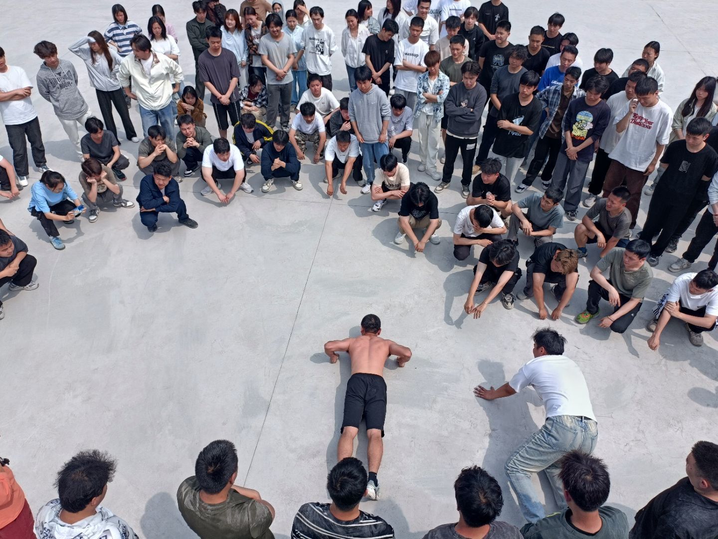 4月7日下午,团队文化创建活动正式拉开训练序幕。通过快速报数分组,组建形成7支19-21人的特色小队。各队通过集体智慧完成队名、队歌、口号构思及队旗设计。在创意展示环节中,各小队依次登台,通过别具一格的创新形式,配合铿锵有力的口号与特色队歌,充分展现团队独特风采,点燃全场热情。该环节有效强化学生协作意识与团队归属感,为后续训练奠定坚实基础。