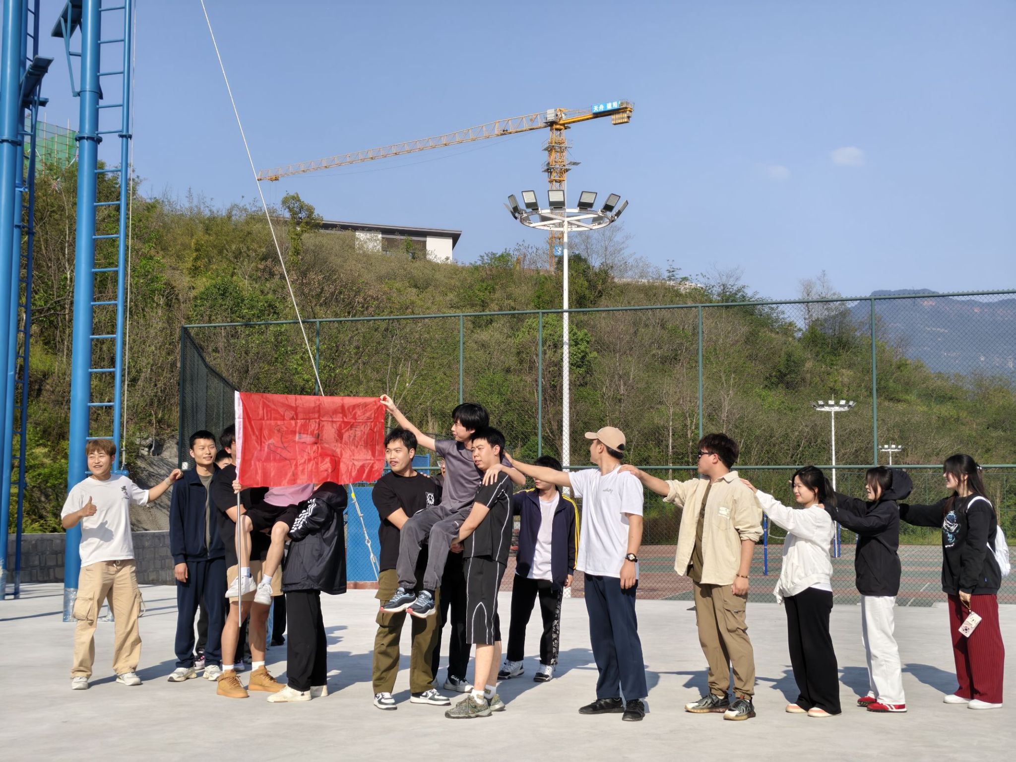 2025年4月9日,重庆移通学院数字经济与信息管理学院组织工程管理专升本1班、2班及大数据管理与应用专升本1班、2班、3班共141名学生,在营地拓展训练基地顺利完成为期三天的素质拓展训练课程。本次课程以"突破自我、凝聚力量"为核心理念,通过系列实践项目切实提升学生领导能力、团队协作能力与应急处突能力,全面增强集体凝聚力。丰富多元、强度递进的拓展内容,助力学生在实践磨砺中突破极限,为未来竞争积蓄综合实力。