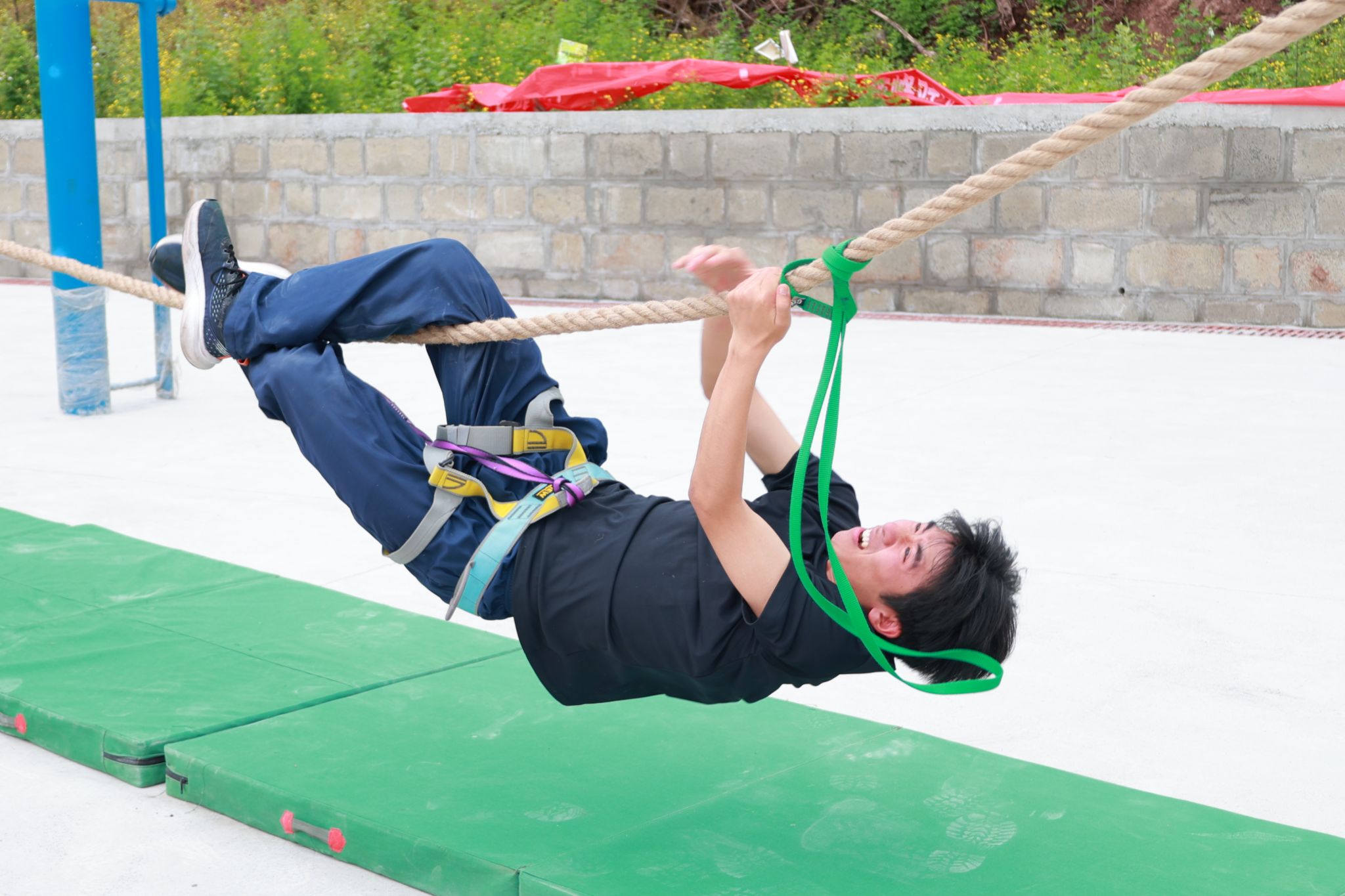 赛事设计彰显军事素养与团队协作的深度融合。在武装越野项目中,参赛者需背负3.5kg的95式步枪模型,通过战术地图自主规划最优路线;牵引横渡环节要求队员以人体搭建支撑系统,展现"不抛弃不放弃"的团队精神。“个人组的加入更构建起个人与团队的同场竞技,当看到青年学子并肩翻越障碍墙时,我深刻理解了何为团队的榜样力量。”赛事裁判长黄杜娟如是说。