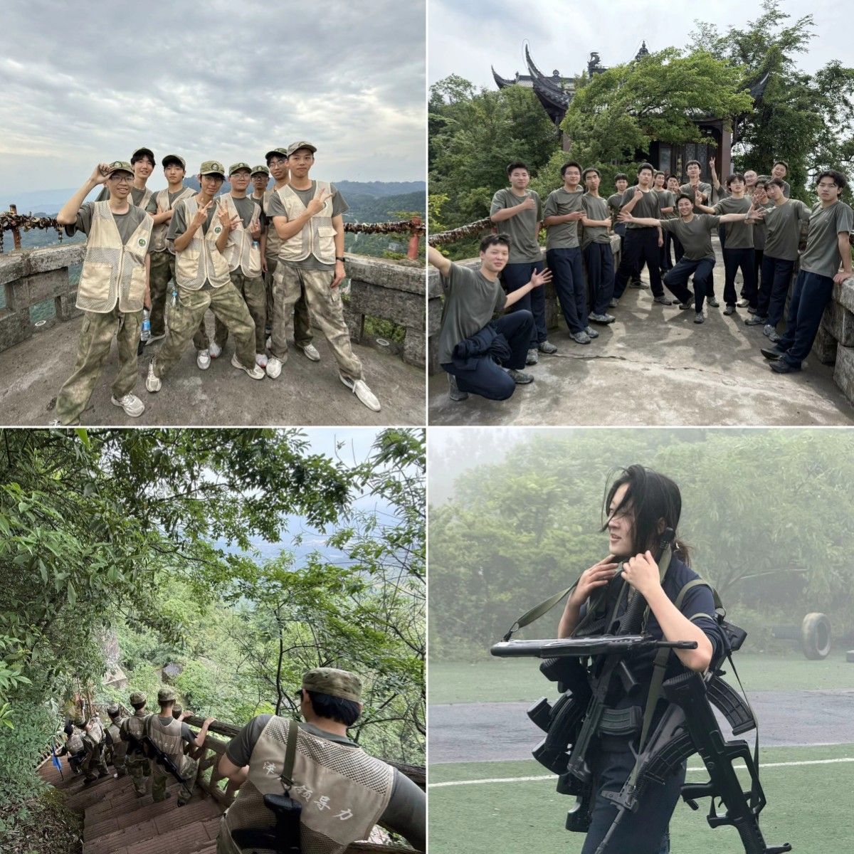 暮春的古剑山还带着阵阵寒意,迷彩裤上的露珠却比朝阳先一步折射出光。4月至5月间,重庆移通学院计算机学院班团骨干与校“国防体育”运动代表队共计65位学员,于“古剑山军事化训练基地”陆续历经“淬炼”领导力训练营的锻造。当18公里重装拉练的脚印刻进山径,当野外炊事的烟火熏染迷彩,这群学子在泥沼与星辰交织的征程中,完成了一场领导力的突围战。