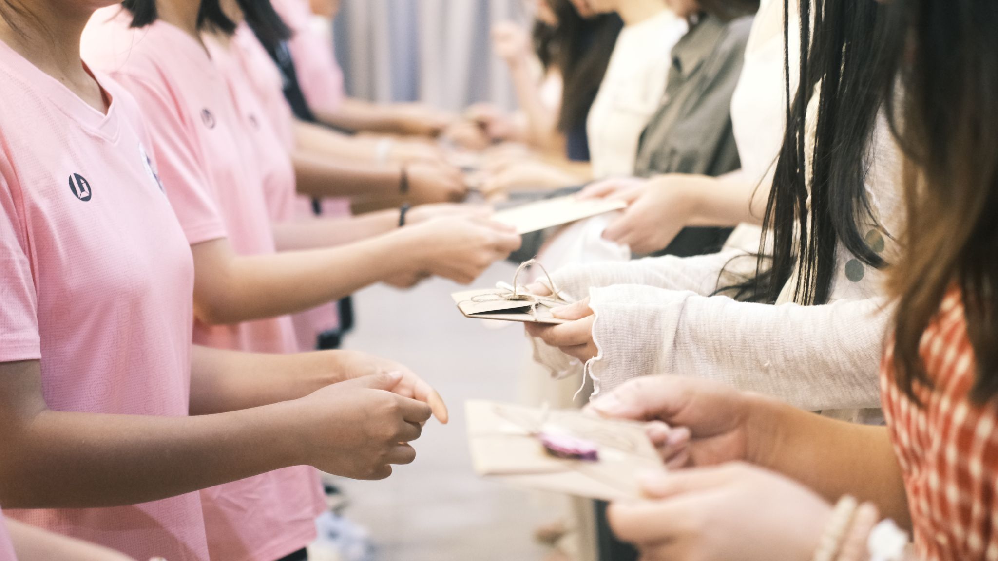 活动在欢快的氛围中拉开帷幕。在队队员们以一场活力四射的舞蹈点燃全场,虽然动作稍显青涩,但每一个笑容都饱含真挚心意。动感的歌舞、幽默的即兴互动,引得在场学姐们笑声不断。舞蹈结束后,在队队员代表手捧精心准备的礼物走向毕业学姐——手工制作的Q版人物拼豆钥匙扣和记录赛场风采的定制明信片。每一份礼物都凝聚着学妹们的心意,同时也蕴含着对毕业队员的不舍。毕业队员苏佳怡感动地说:“看着她们在场上尽情释放活力,每个节目都藏着对我们的心意,这种被珍视的感觉特别温暖。”