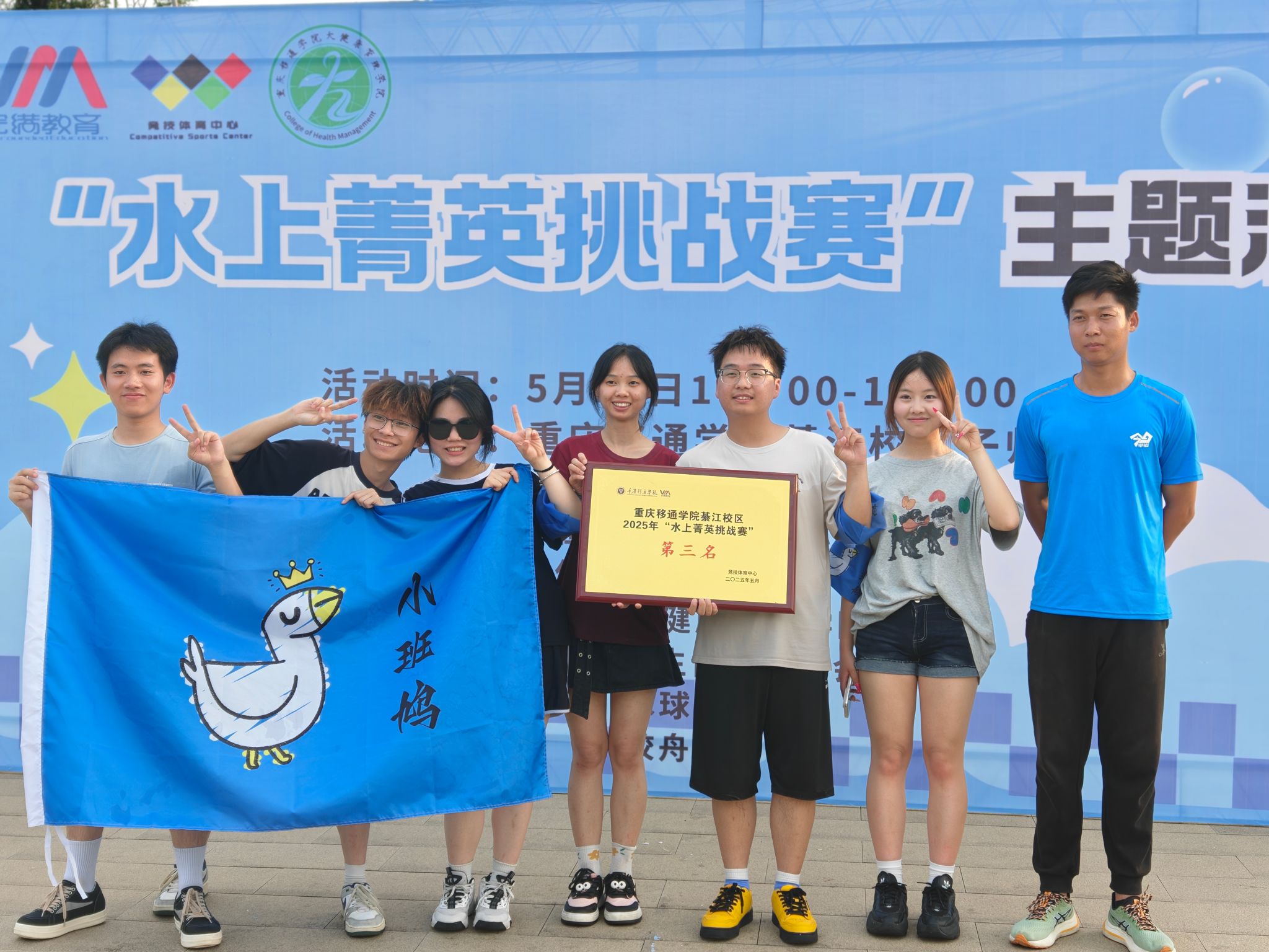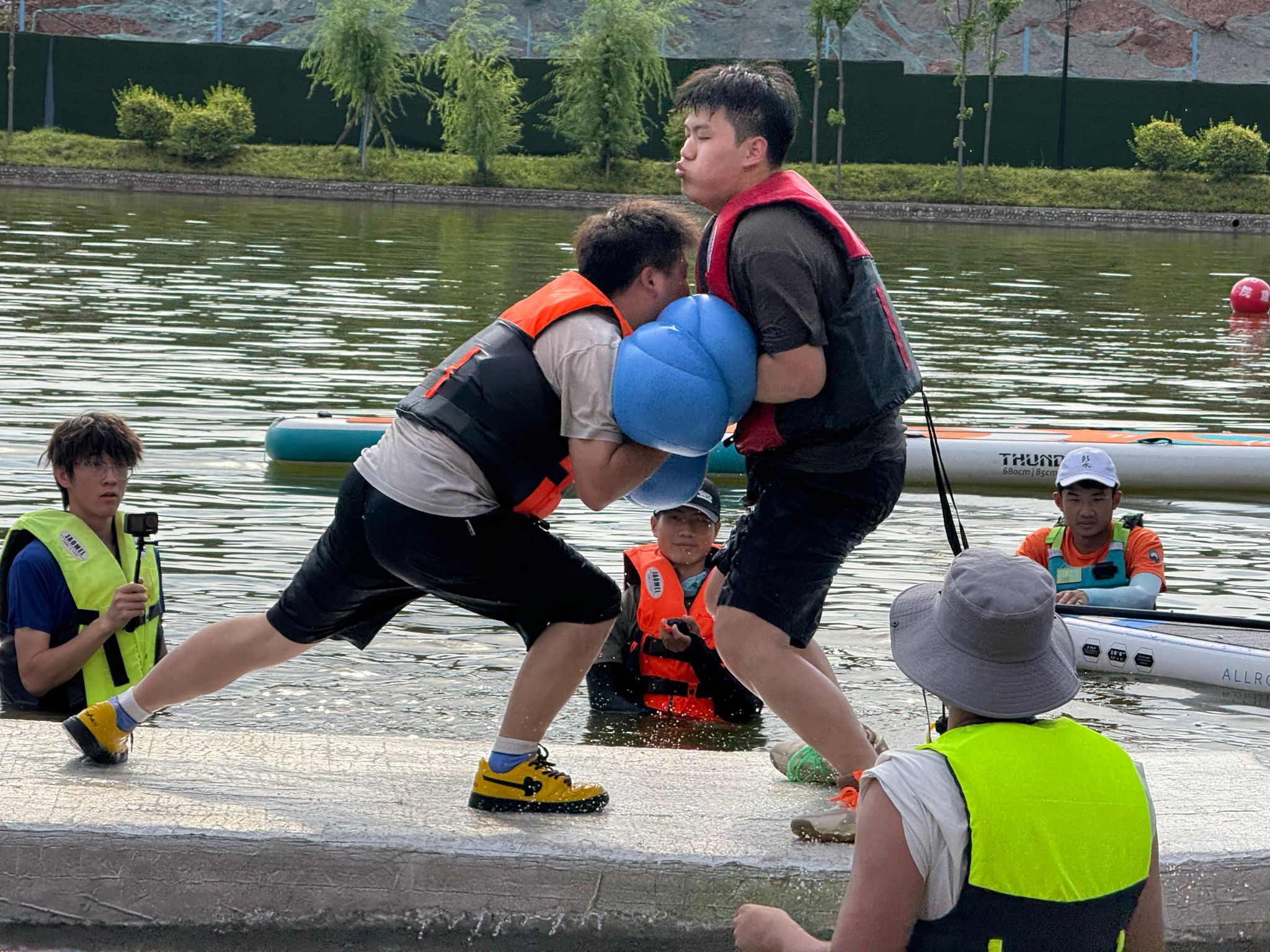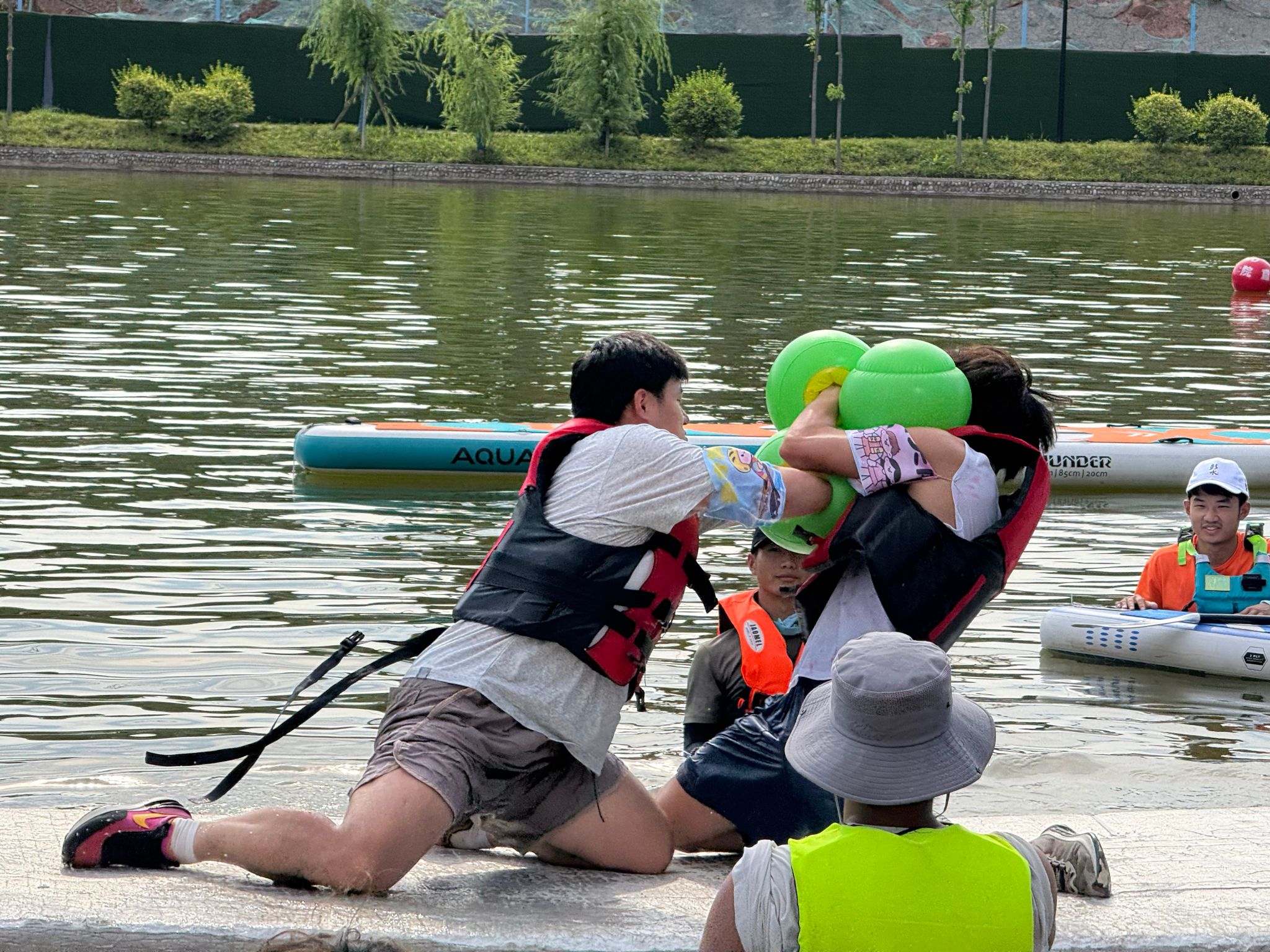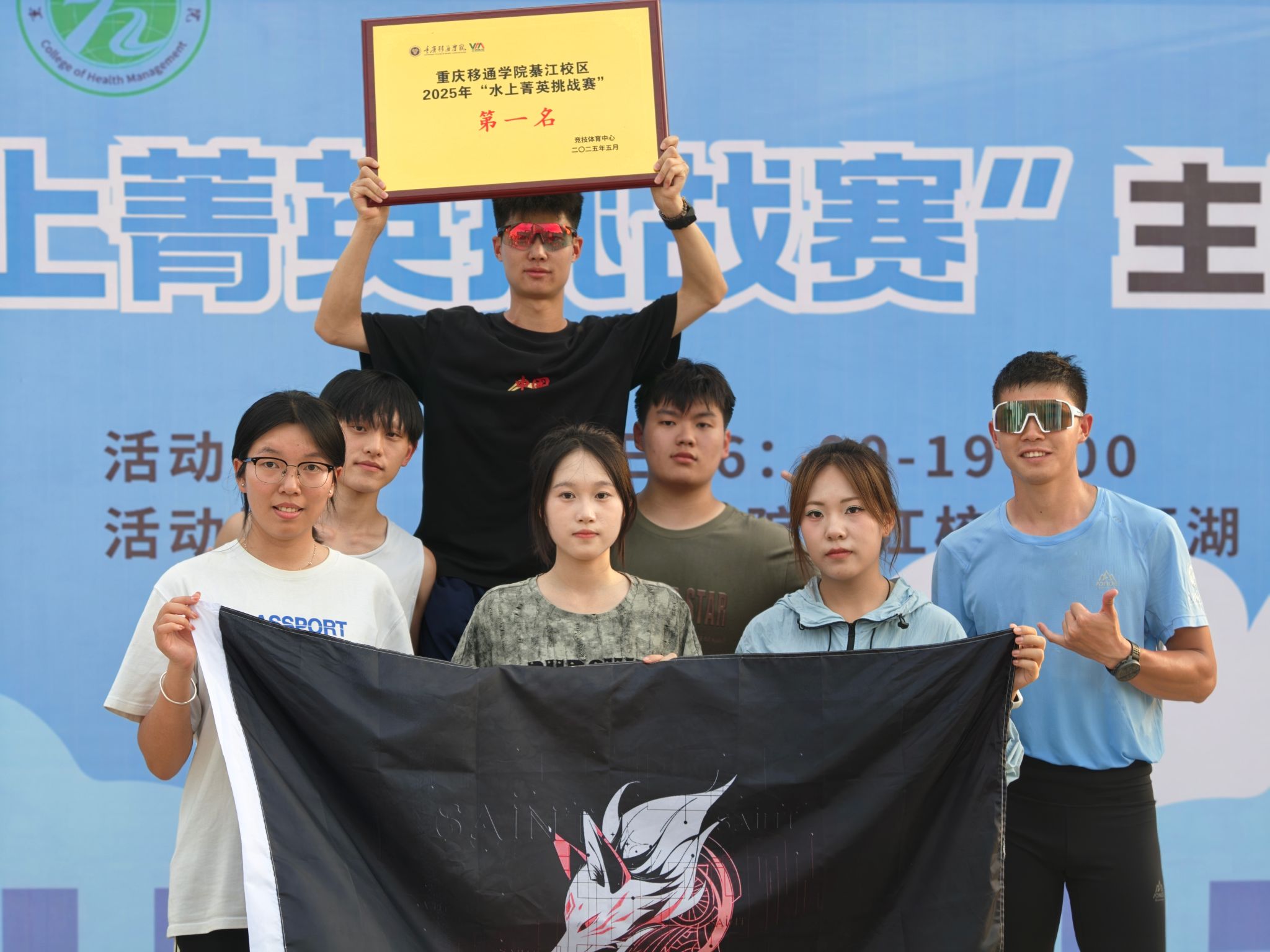 为践行完满教育理念,推进校园体育文化建设,2025年5月21日,重庆移通学院綦江校区子师湖畔成功举办首届"水上菁英挑战赛"。赛事由竞技体育中心主办,营地教育中心与大健康管理学院联合承办,学生体育联合会、水球协会、校舟艇队、校定向越野队、校国防体育队共同协办,吸引全校8个代表队、48名学子展开水上角逐。活动以"突破极限·浪涌青春"为主题,通过三大特色竞技项目激发学生潜能,为校园注入蓬勃朝气。