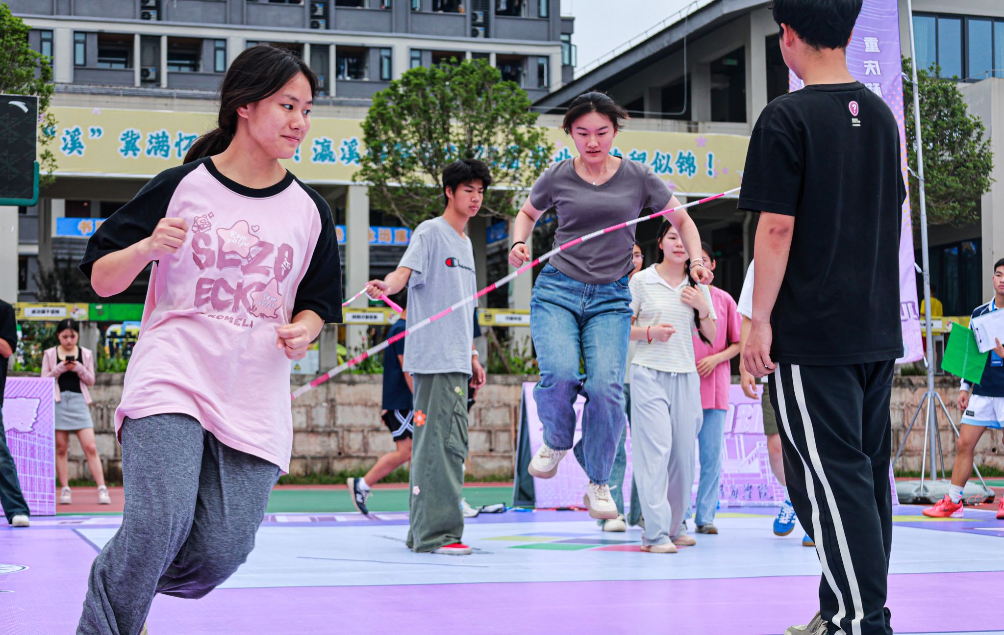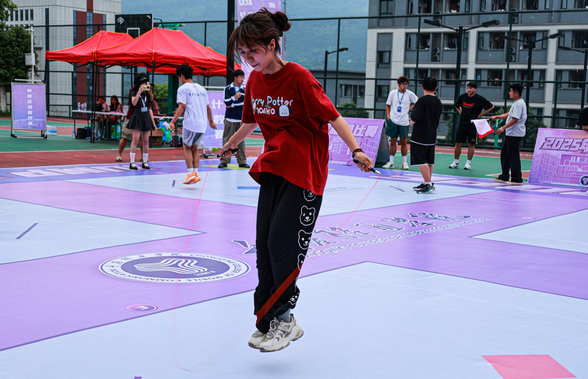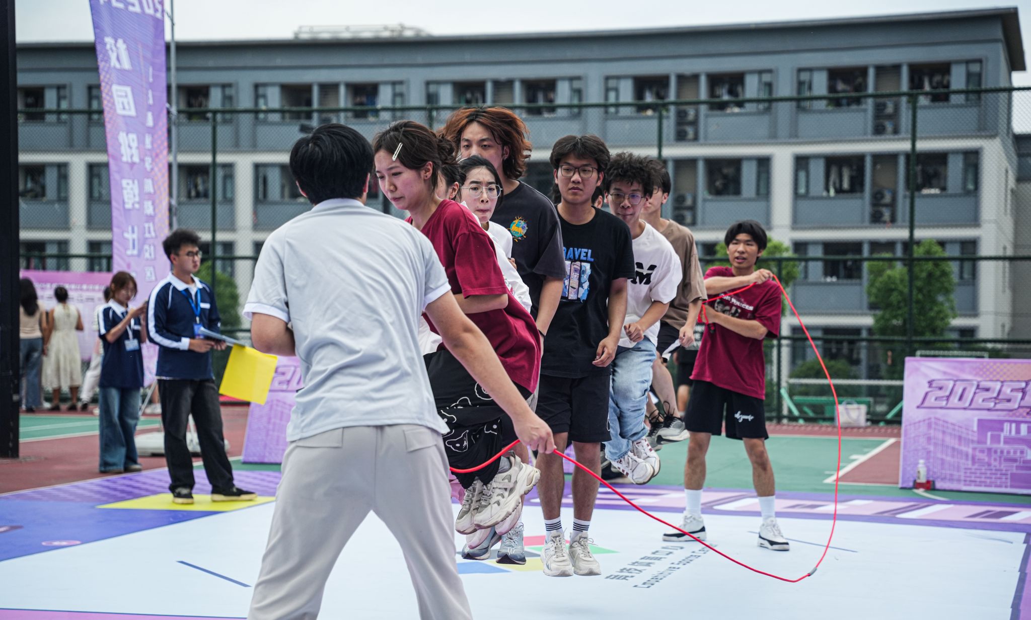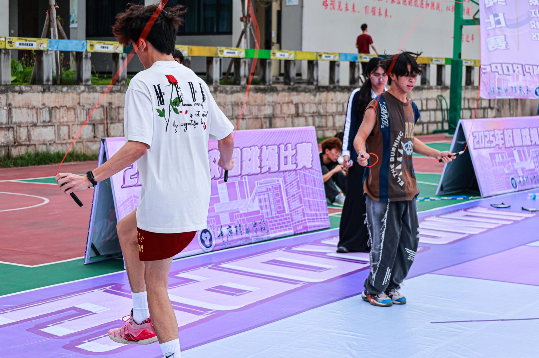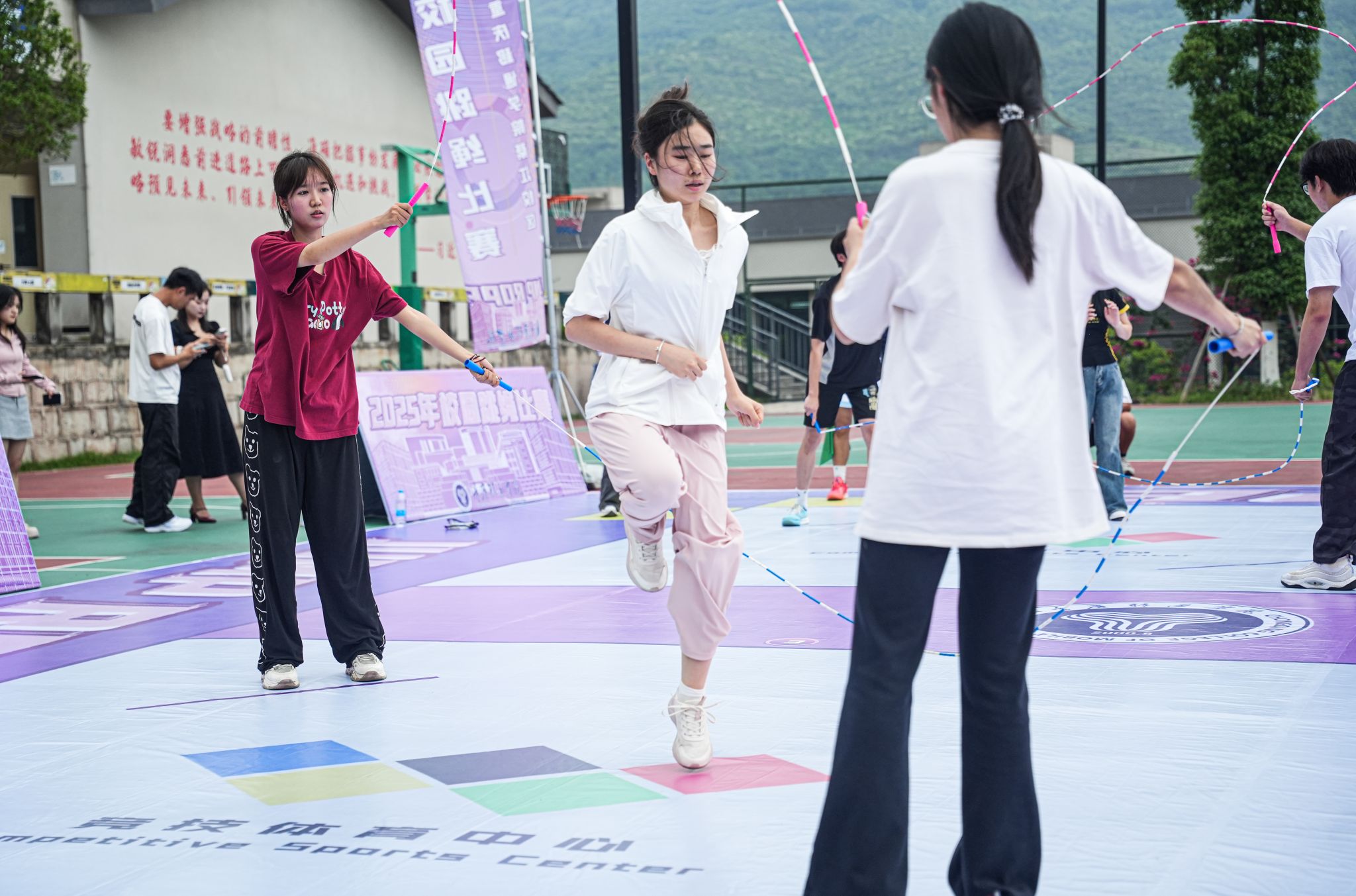 5月23日,重庆移通学院綦江校区瀛溪篮球场绳影翻飞、喝彩阵阵。作为贯彻落实国家关于加强和改进新时代学校体育工作的系列部署、深化体教融合实践的生动载体,以及学校“完满教育”育人理念的重要组成部分,2025年校园跳绳比赛在此活力启幕。本次赛事旨在通过富有活力的竞技平台,促进学生在德智体美劳各方面全面发展,提升学生健康素养,培养其团队协作精神与顽强拼搏意志,为“健康中国”战略贡献青春力量。