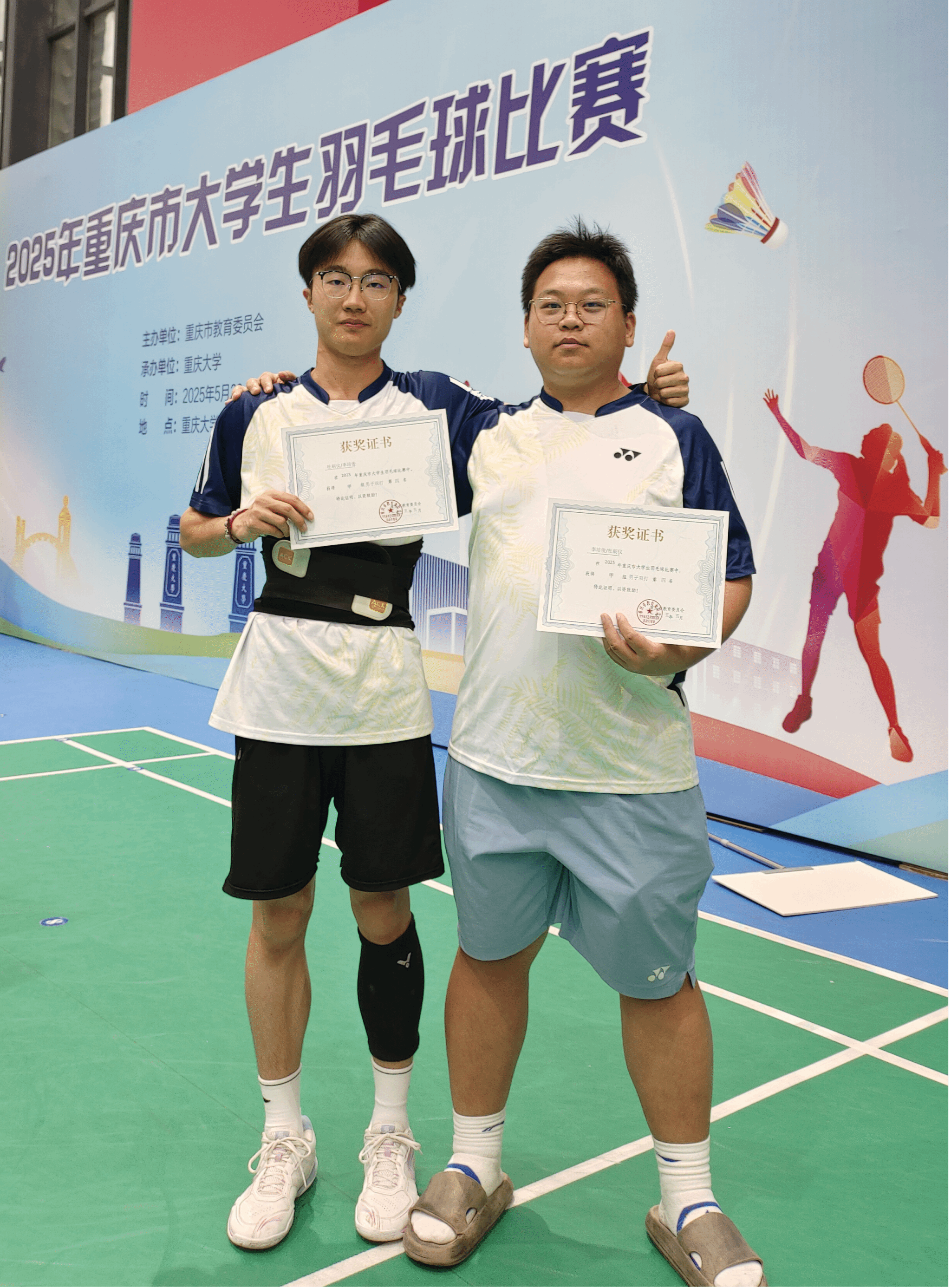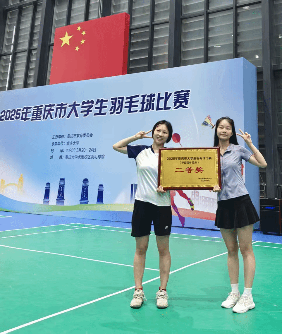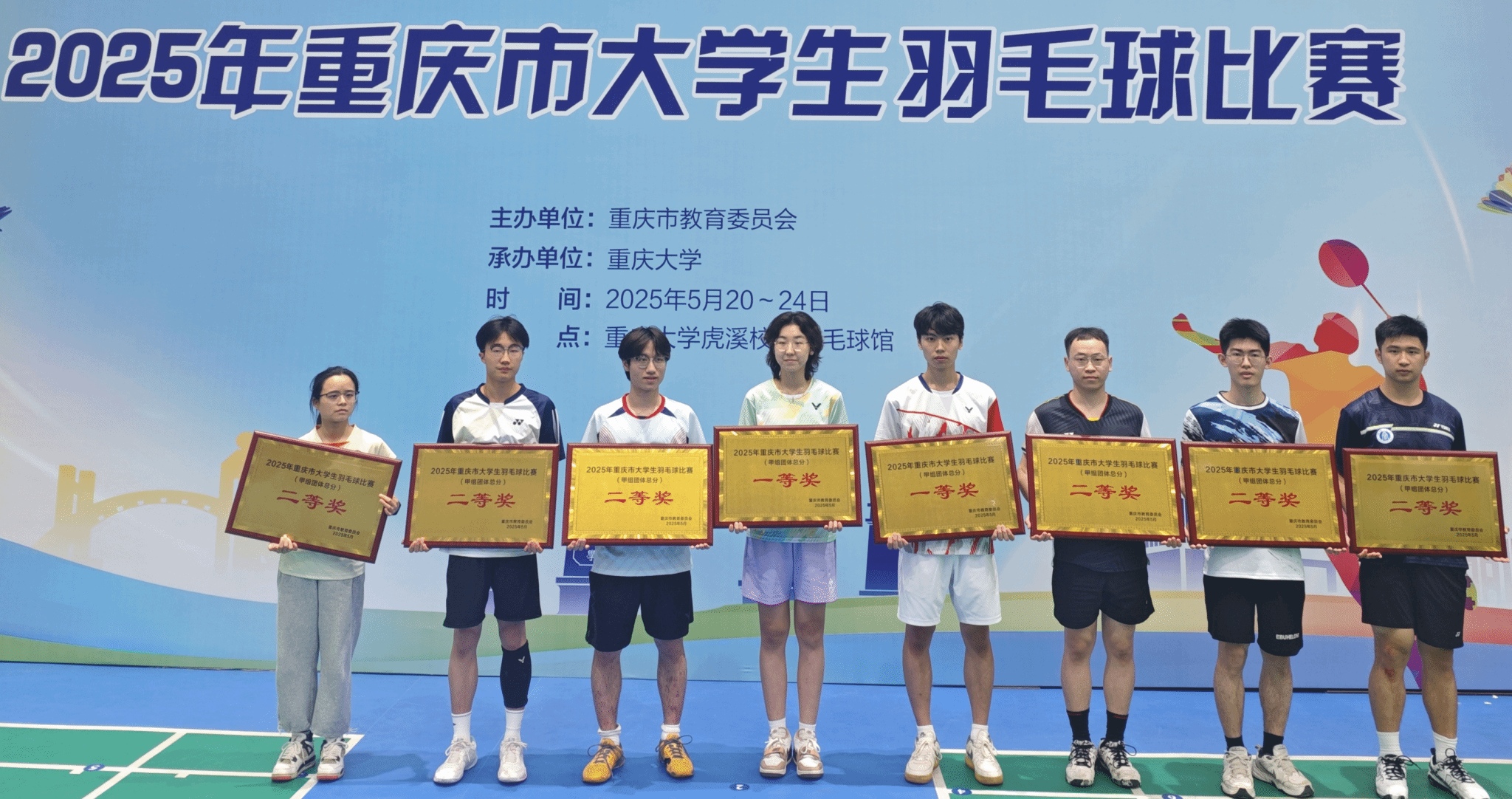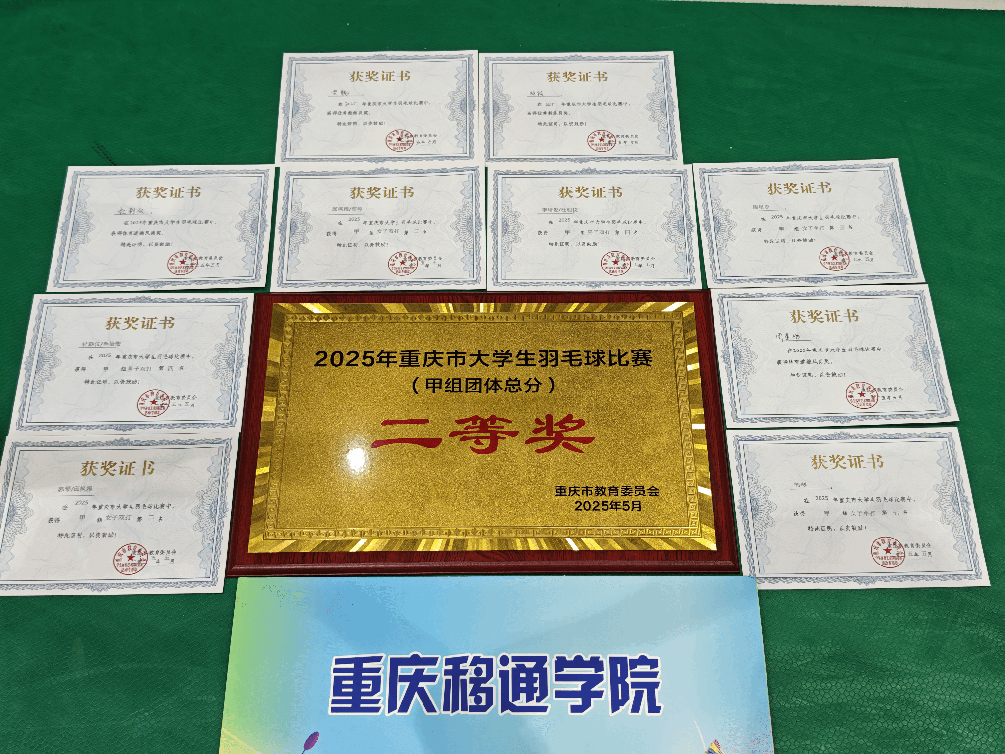 2025 年 5 月 20 日至 24日,"2025 年重庆市大学生羽毛球比赛" 在重庆大学虎溪校区火热开赛。重庆移通学院羽毛球队凭借扎实的技术功底与顽强的拼搏精神,在赛场上大放异彩,不仅勇夺甲组团体二等奖,更在单项赛事中创下多项突破 —— 女子双打摘得银牌,男子双打斩获第四名,女子单打喜获第五名、第七名的优异成绩,实力诠释了学校 "最体育的非体育大学" 的特色品牌。