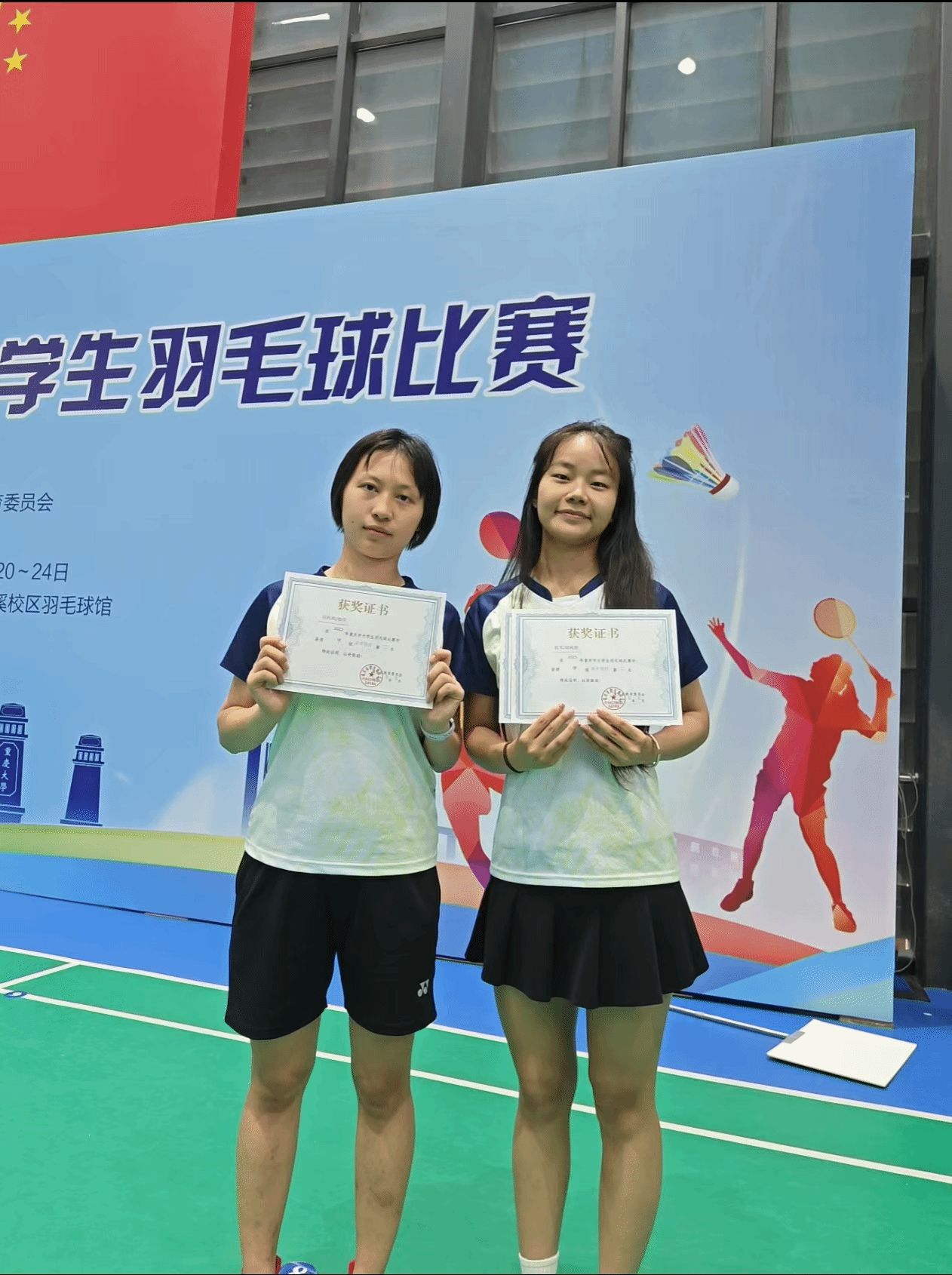 在女子双打项目中,由 2021 级淬炼商学院郭琴与 2025 级大健康管理学院邱枫雅组成的 "移通玫瑰组合" 表现尤为亮眼。她们在多轮对决中展现出超凡的战术执行力,尤其在多场比分胶着的加时赛中,凭借冷静的临场判断与精准的击球落点,连克强敌,最终以精湛的配合捧起亚军奖杯。