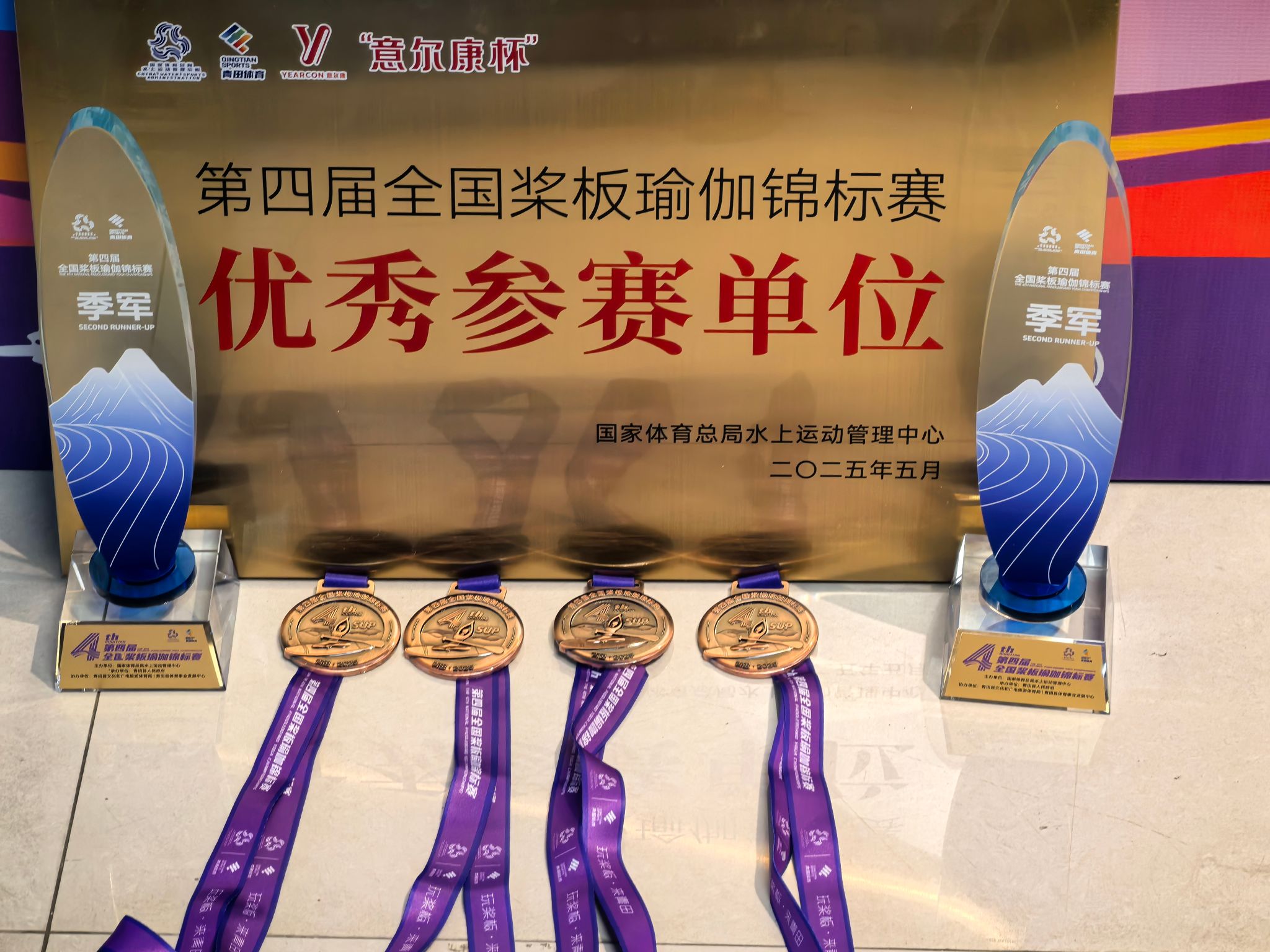 5 月 23 日至 25 日,由国家体育总局水上运动管理中心主办的第四届全国桨板瑜伽锦标赛在浙江青田太鹤湖圆满举行。作为国内桨板瑜伽领域的最高级别专业赛事,本次比赛吸引了300余名中外籍顶尖选手、23支代表队同场竞技。经过3天激烈的角逐,重庆移通学院代表队在一众专业院校中突出重围,斩获了高校组女双桨板、持桨瑜伽双项季军及其他各项共17项国家级荣誉,团体总分跻身前三名,我校获“优秀参赛单位”表彰。在碧波之上展现出移通学子的青春风采与竞技精神。